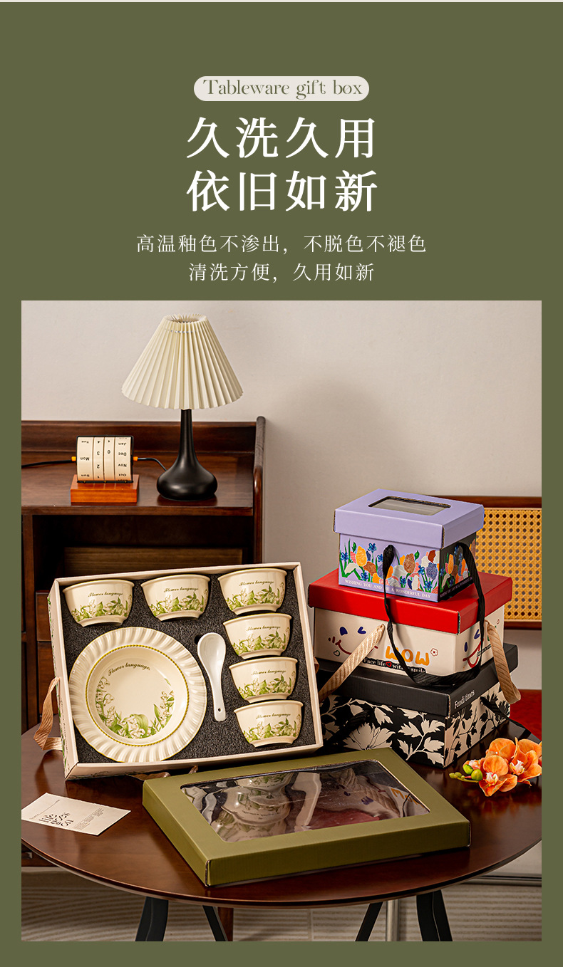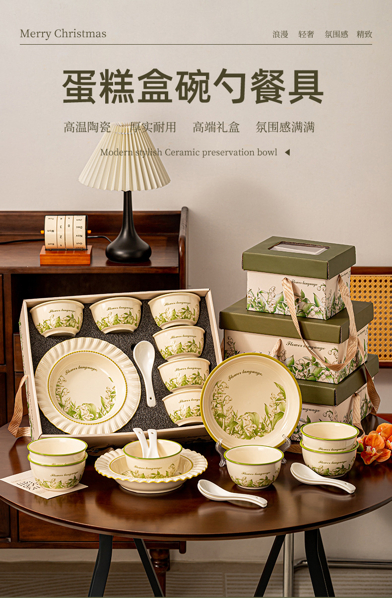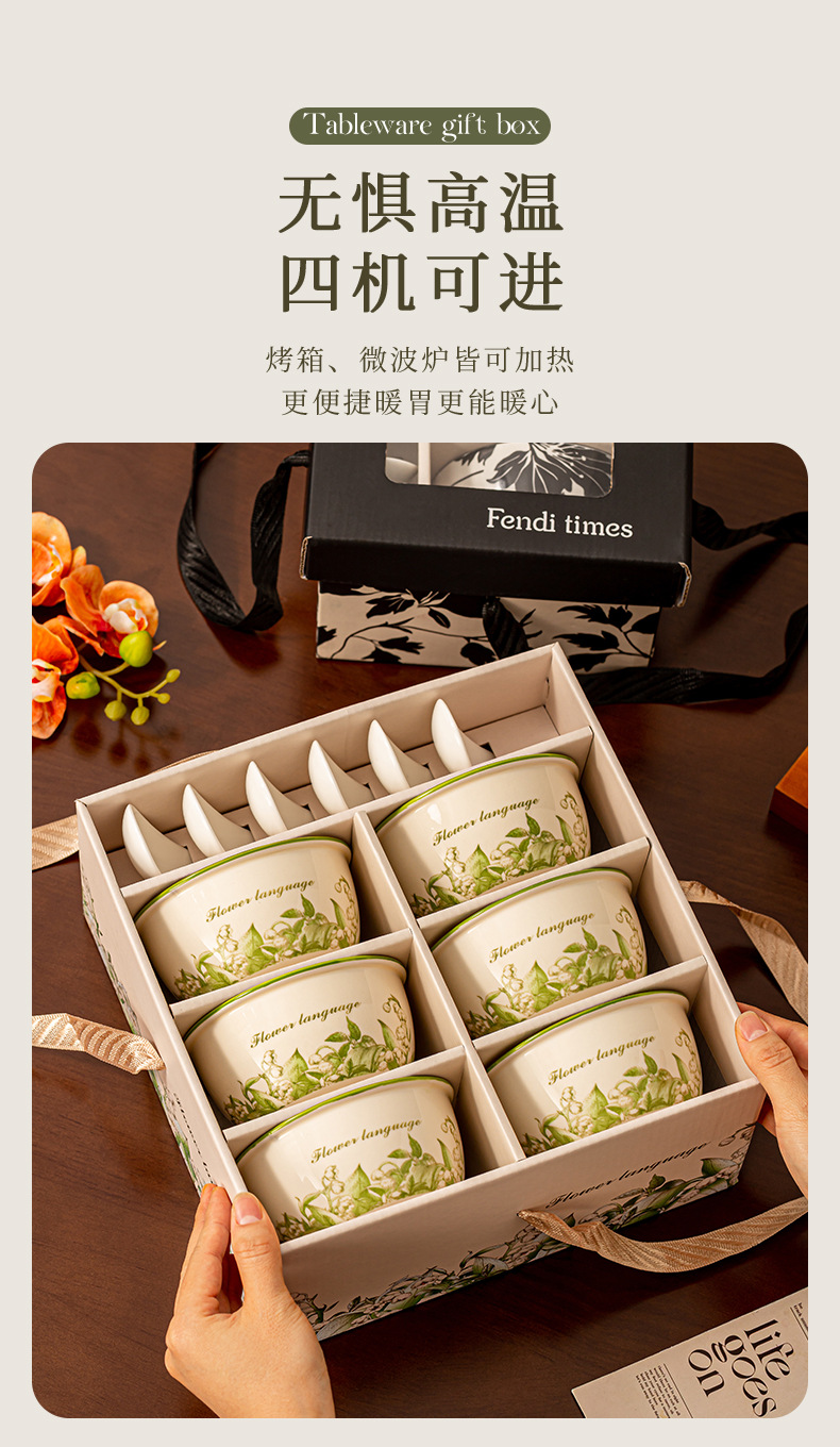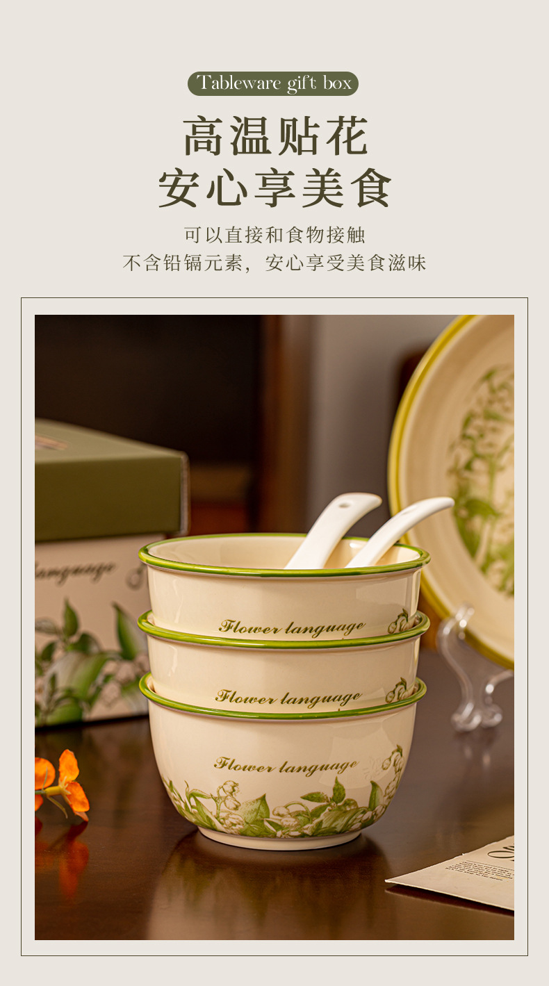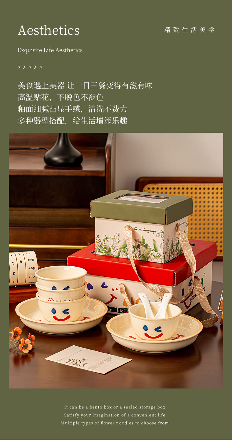【抗菌釉瓷礼盒套装】送礼家用套装礼盒,健康无铅高温瓷|暖心微笑碗&铃兰花语勺✨让每一餐都充满仪式感!