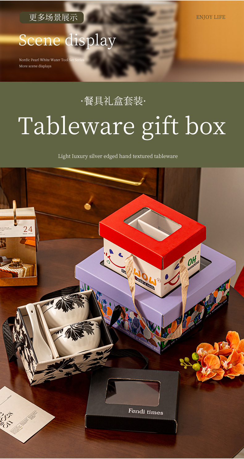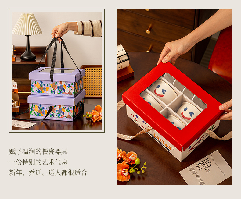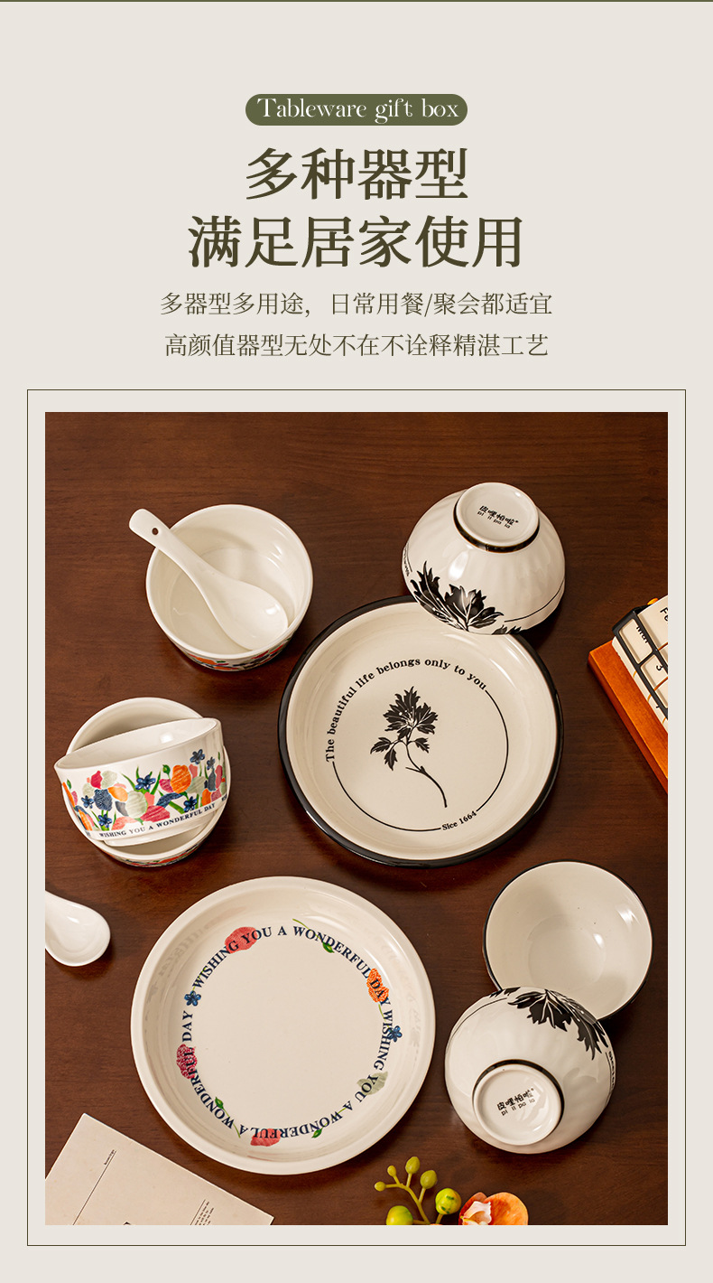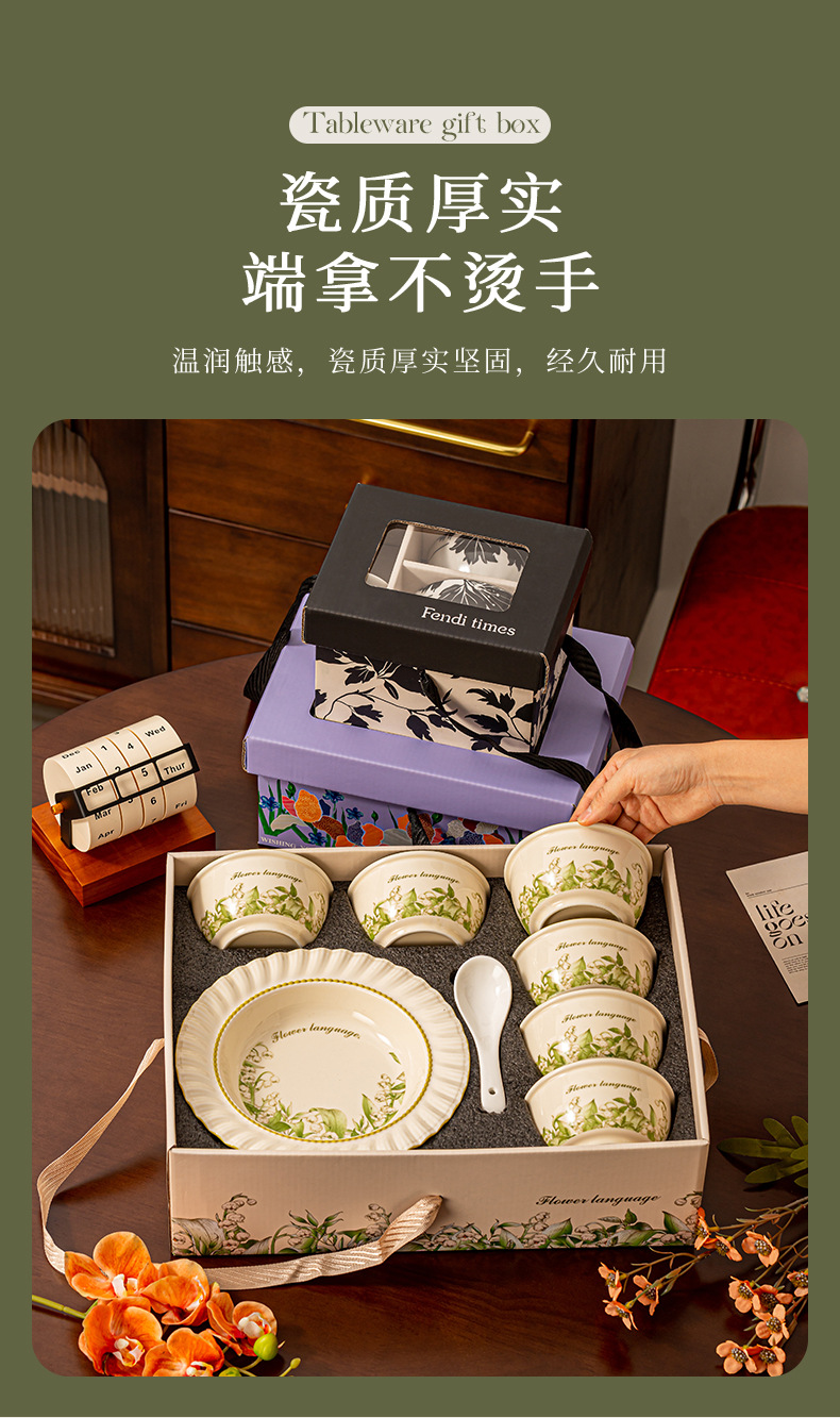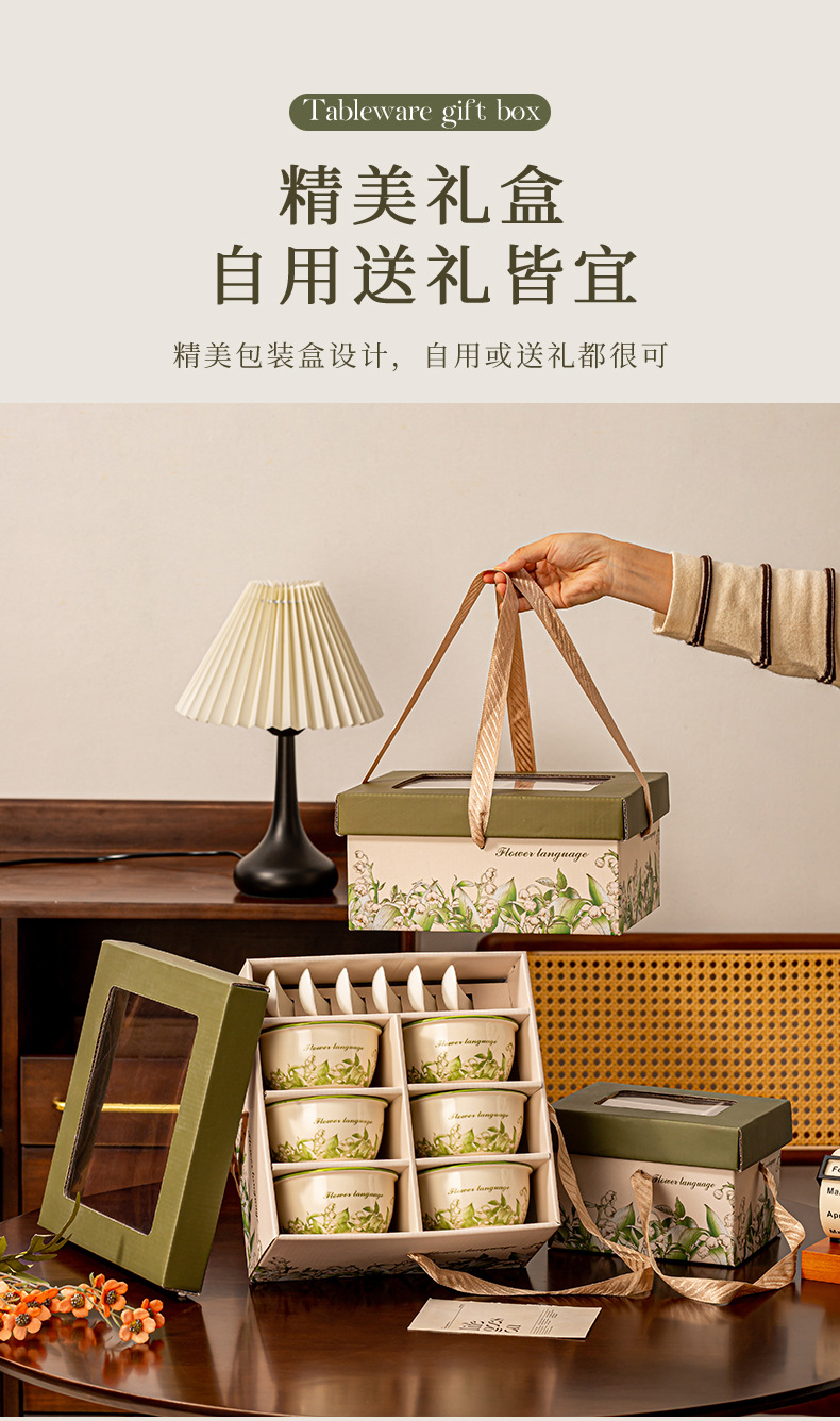 【抗菌釉瓷礼盒套装】送礼家用套装礼盒,健康无铅高温瓷|暖心微笑碗&铃兰花语勺✨让每一餐都充满仪式感!