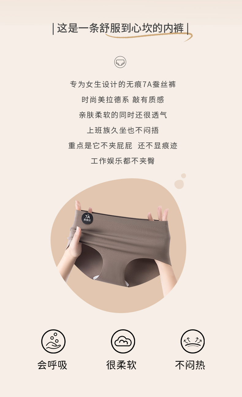 【品名】芬腾7A抑菌桑蚕丝无痕内裤