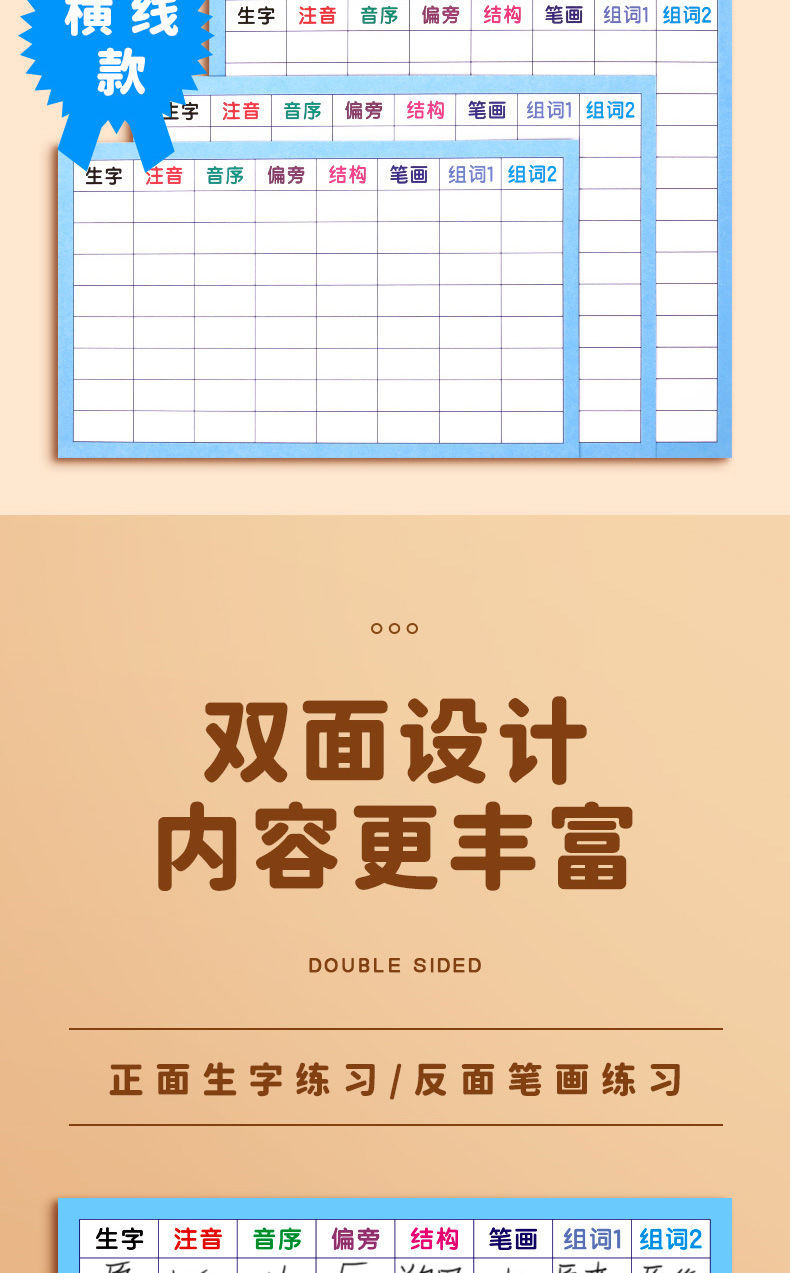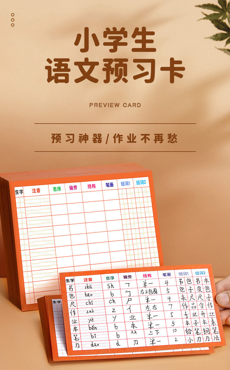 生字预习卡小学生语文通用一年级二年级三年级四五六上册下册笔画训练单词空白卡片双面小卡片生字表课前练习