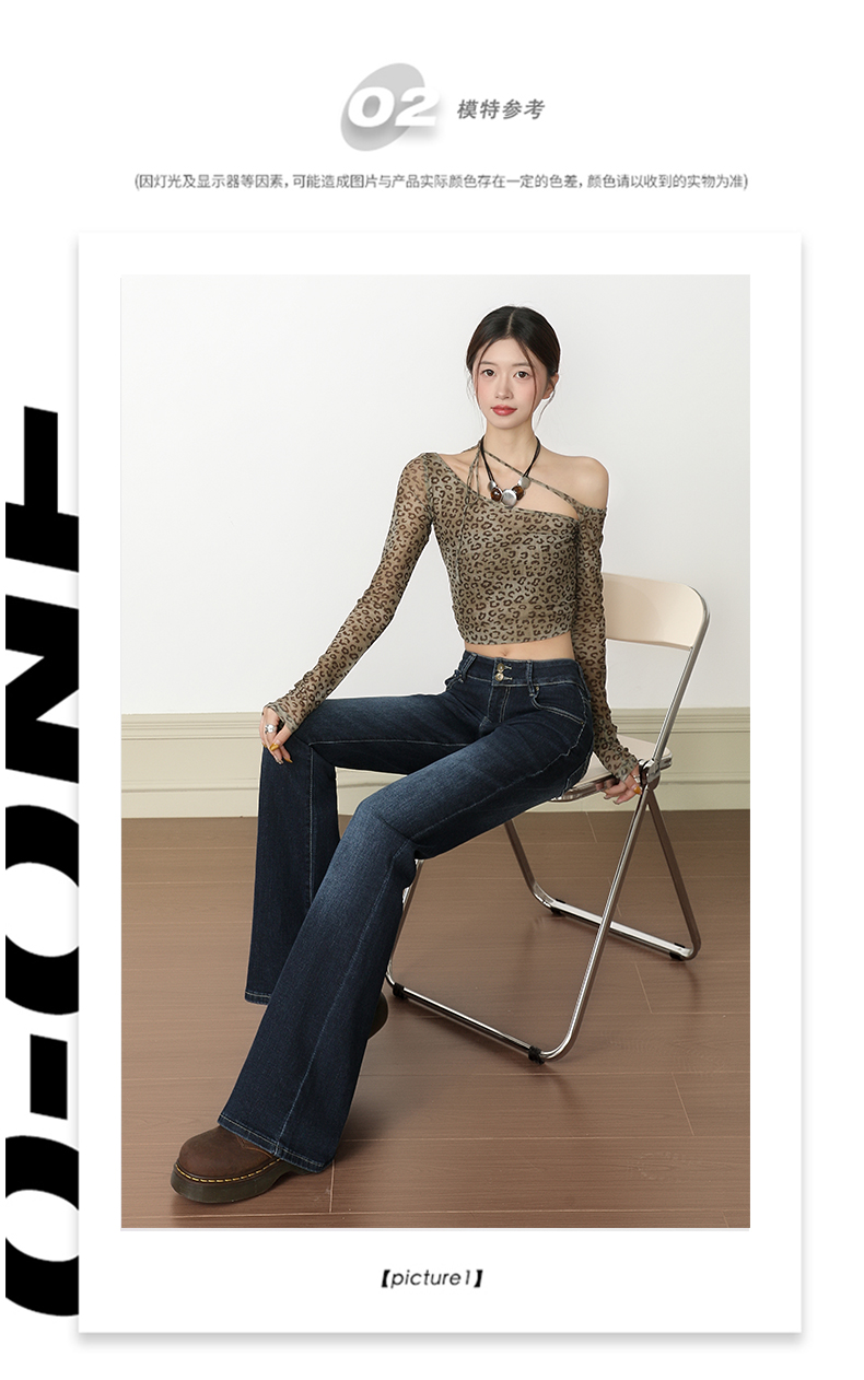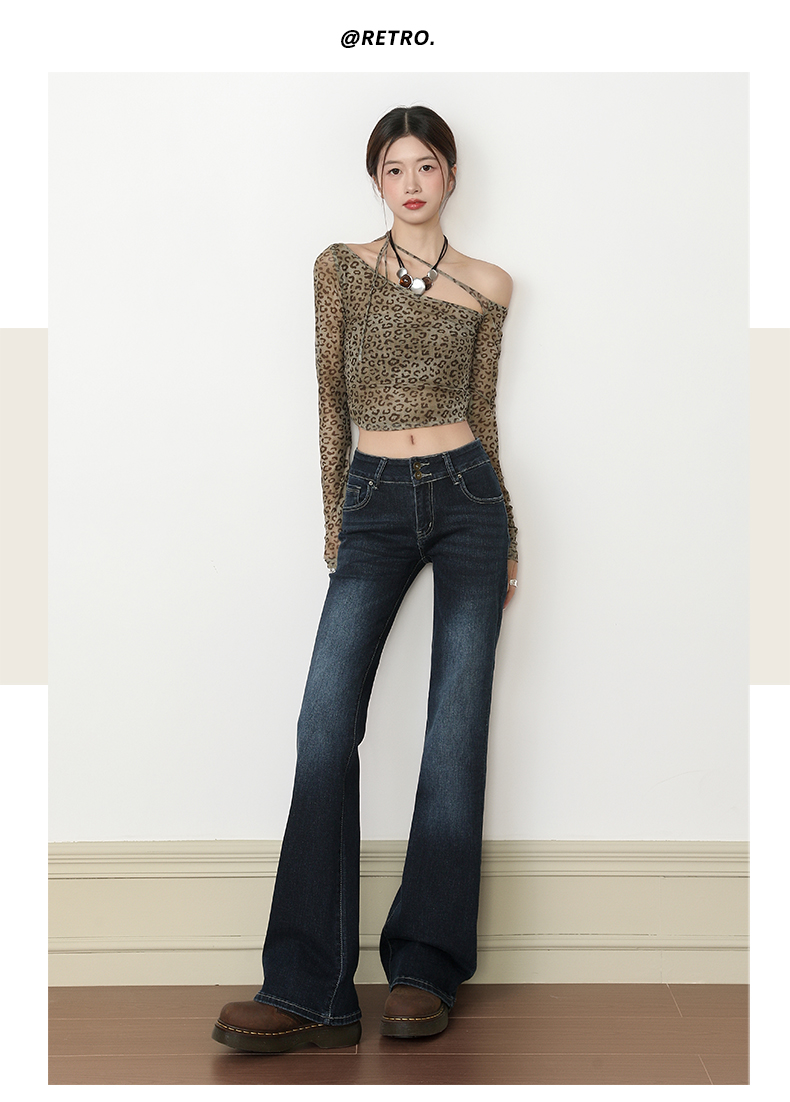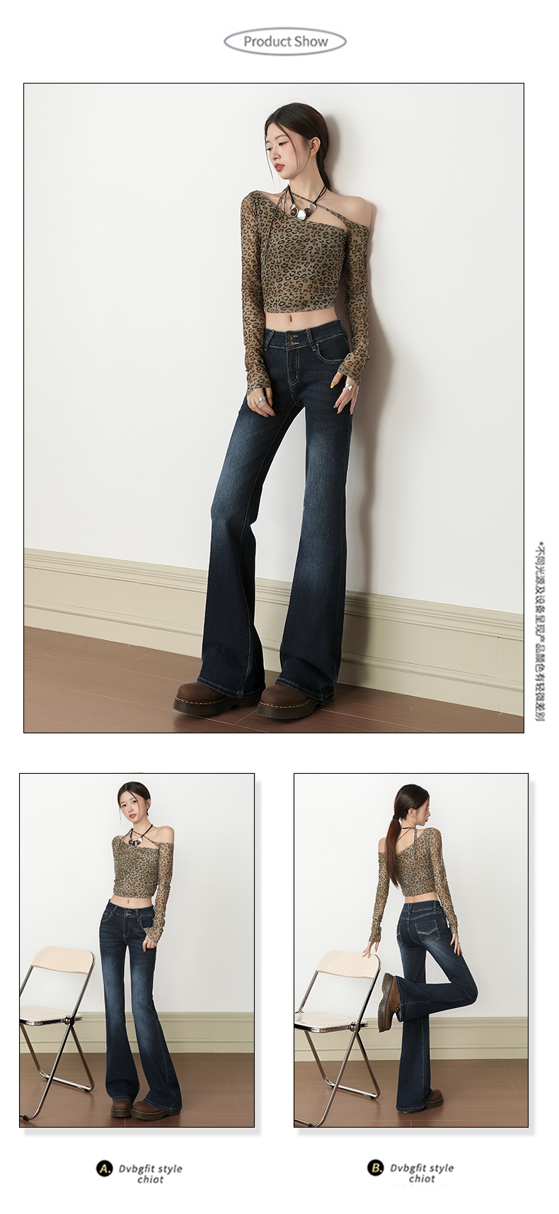 罗蒙女士牛仔裤美式复古低腰微喇辣妹修身直筒长裤子百搭弹力拖地喇叭裤子