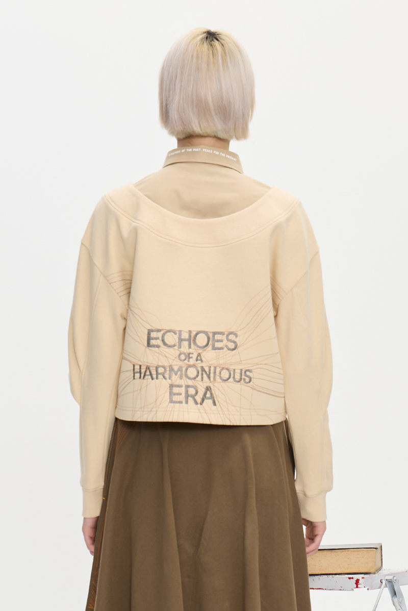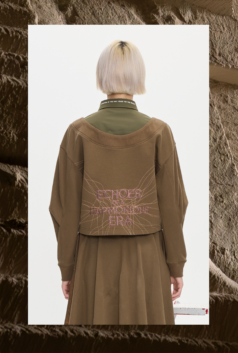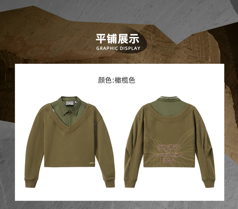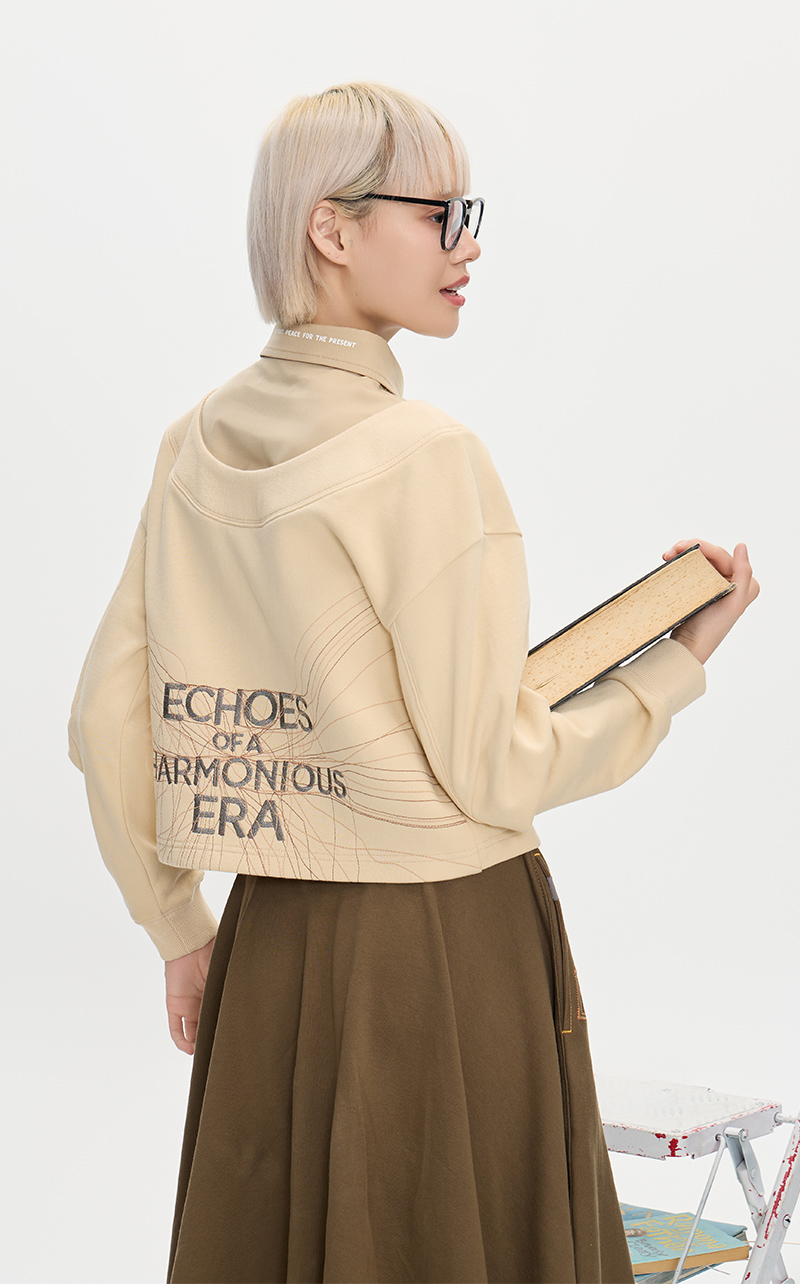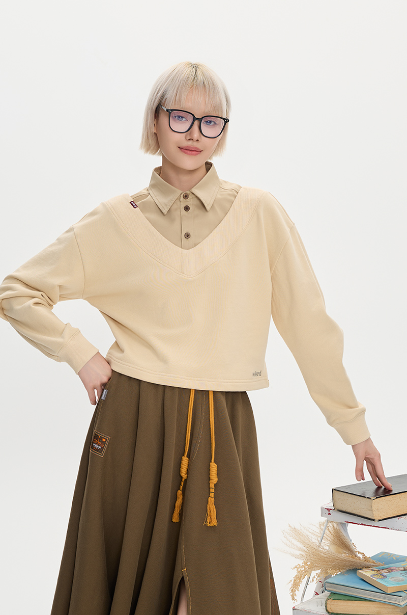 ONIARAI/鬼洗25秋冬黑标石器时代假双层宽松半截衬衫卫衣 A240017