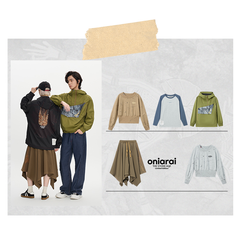 - ONIARAI品牌以鬼洗、地藏小王、日本蓝三个系列组成,鬼洗拥有独特的品牌文化图腾、夸张的图案设计、个性化的搭配,表达出潮人自我格调,制造话题、创造独特个性与生活态度。
