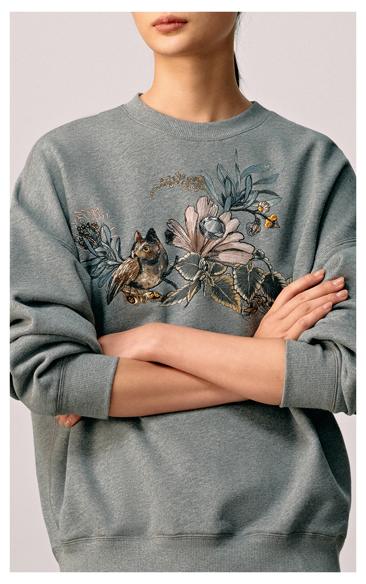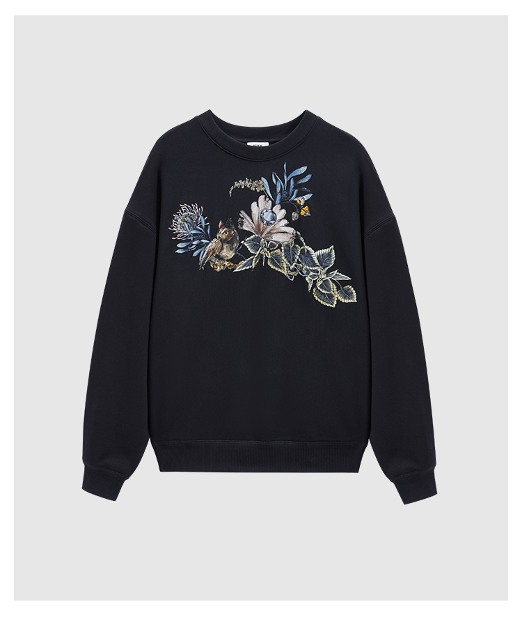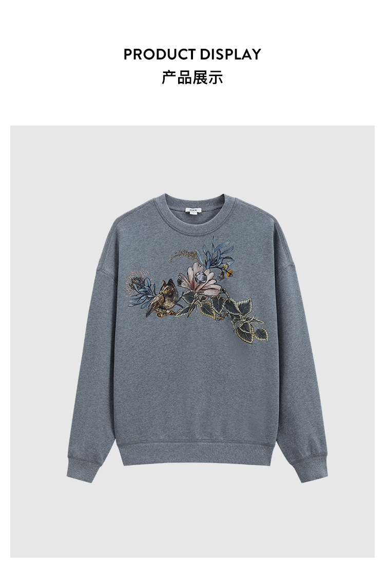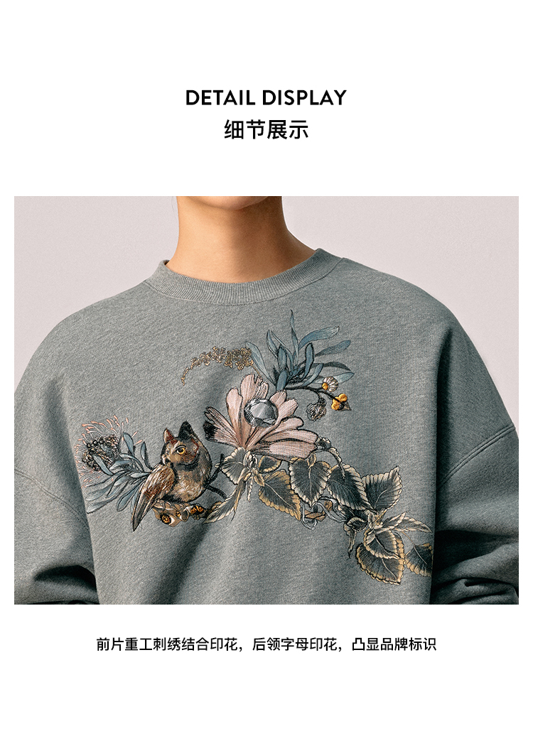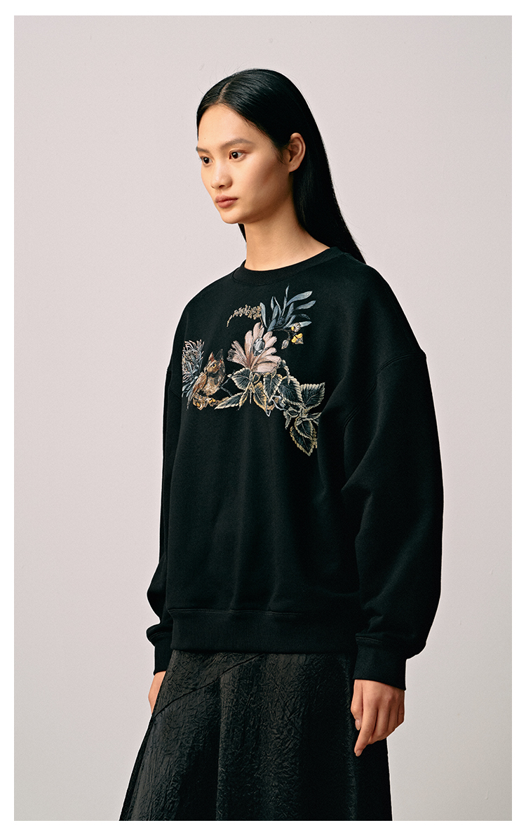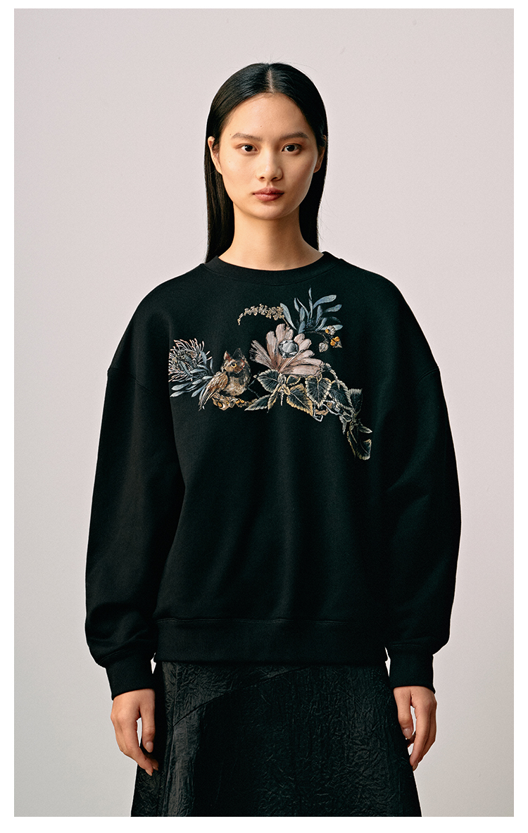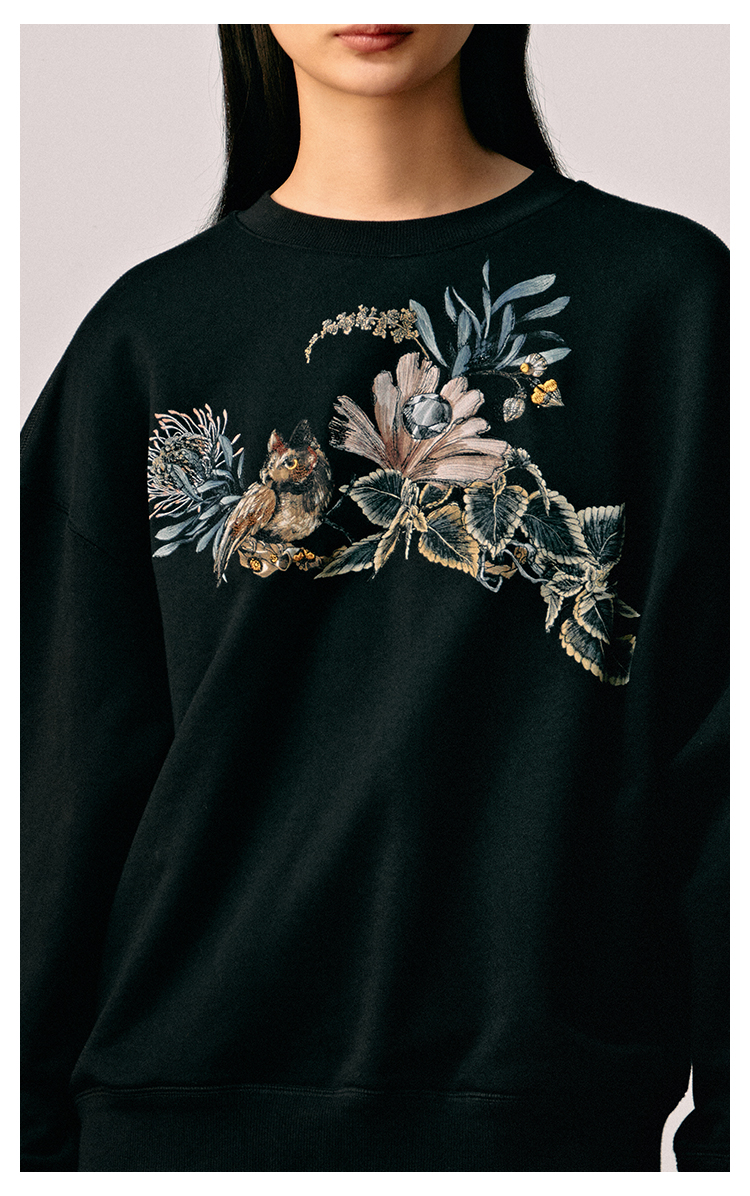 【JASON WU】秋冬新款圆领童话印花刺绣通勤上衣卫衣女
