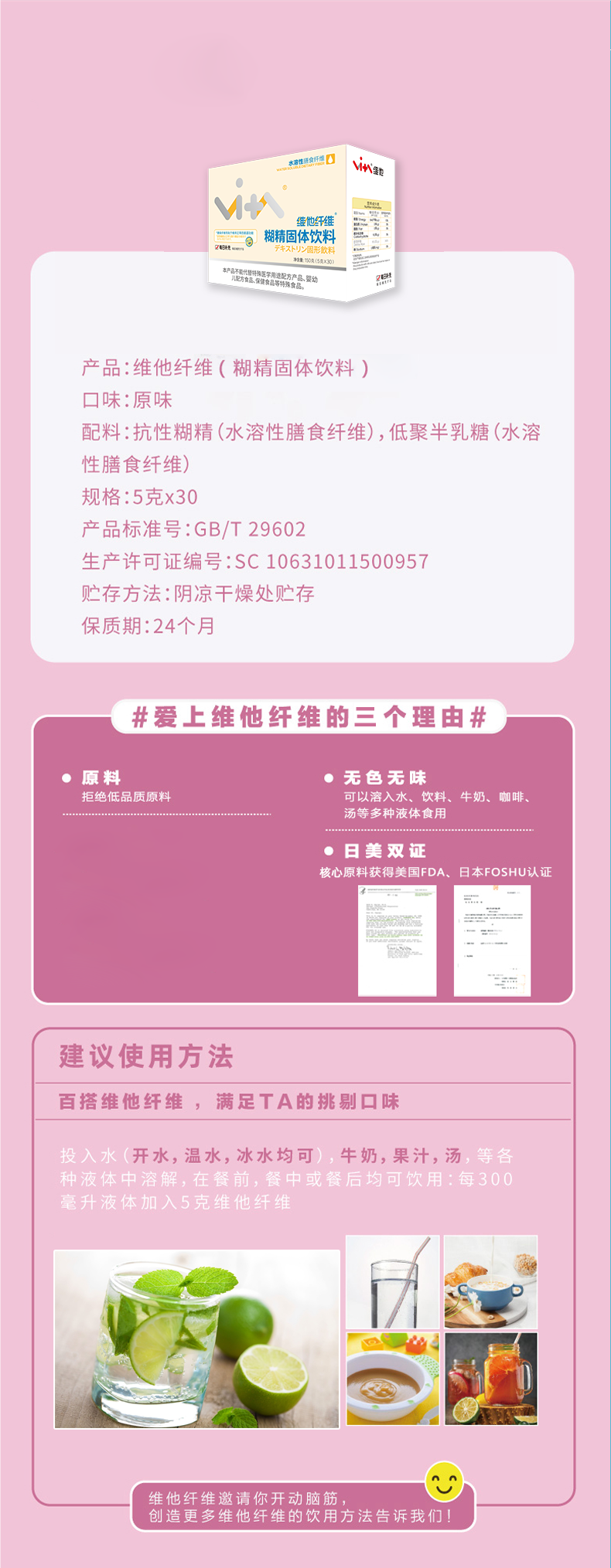 维他纤维 水溶性膳食纤维 5g*30条/盒 营养均衡 随餐1条 健康成长