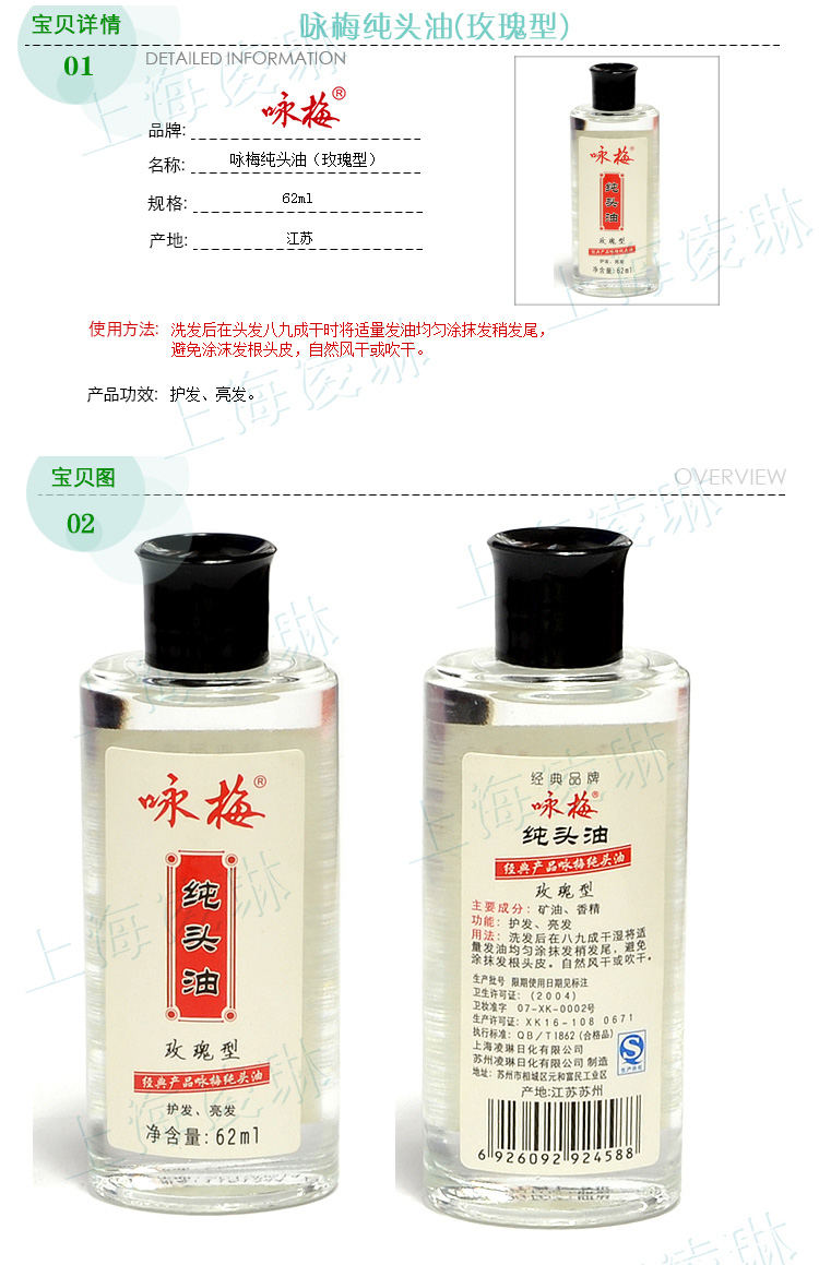 咏梅纯头油(玫瑰型)62ml