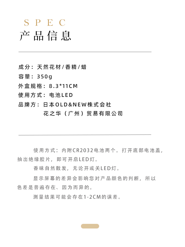 【日本进口香薰蜡烛】BOTANICA花草香薰蜡烛灯家用无火室内房间香氛LED灯摆件生日礼物