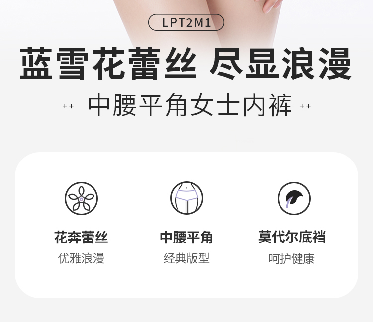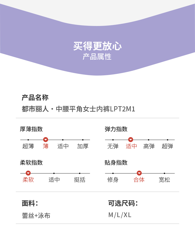 都市丽人内裤薄透丝滑平角裤蕾丝+泳布女士内裤LPT2M1