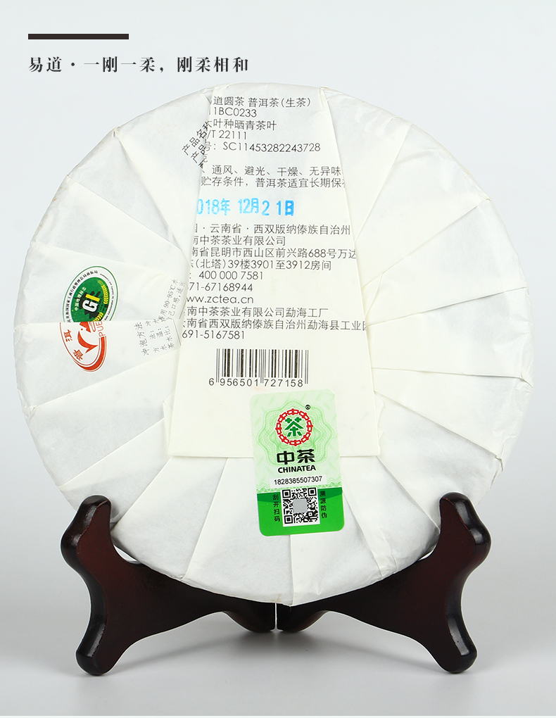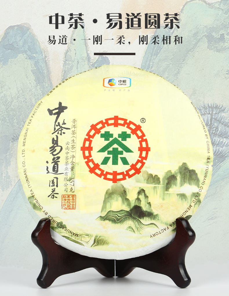 【第2件0元 顺丰包邮】中茶 2018年易道圆茶 普洱生茶 357g/饼(天猫同款)