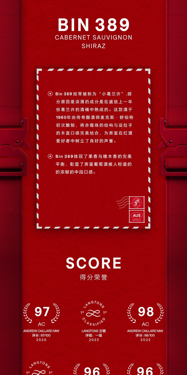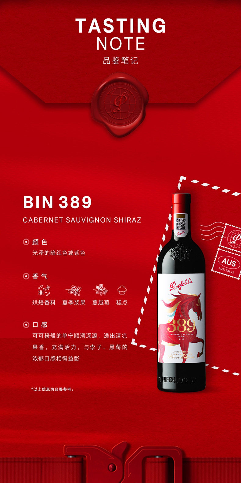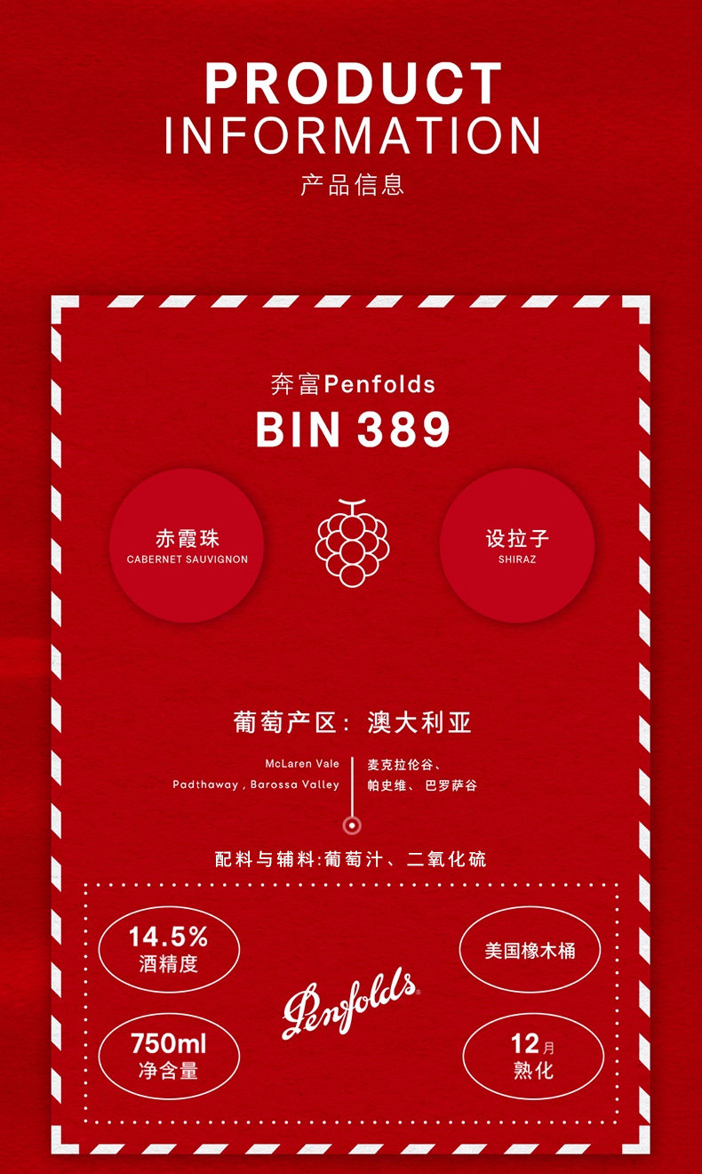 Penfolds奔富马年BIN389赤霞珠设拉子红葡萄酒澳洲原装进口干红正品官方旗舰店