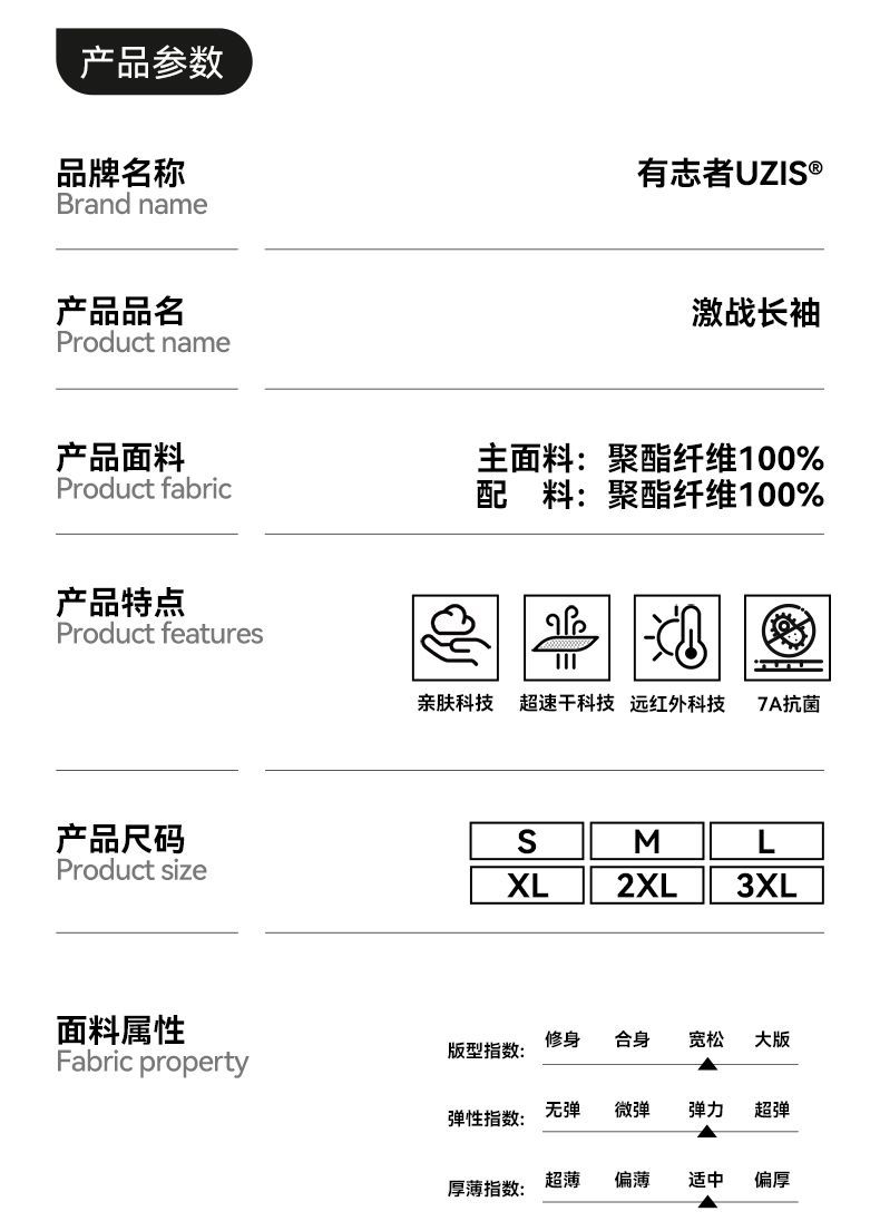 有志者UZIS男士运动长袖篮球服实战宽松透气美式T恤训练休闲[激战