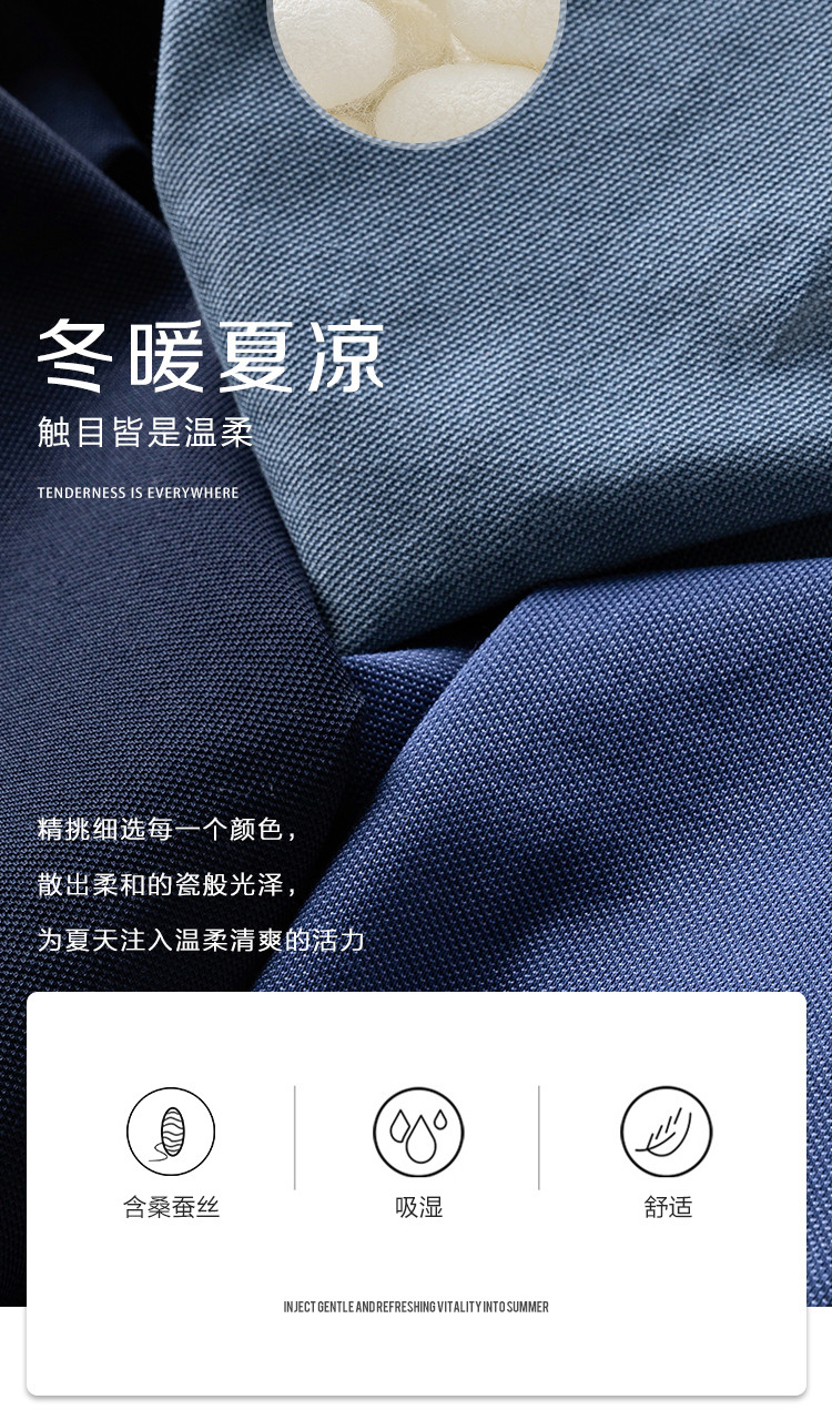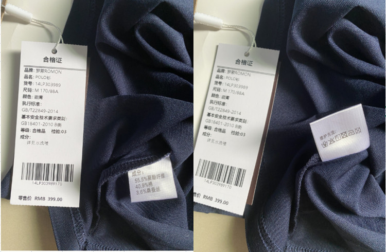 面料:55.5%聚酯纤维 40.9%棉 3.6%桑蚕丝