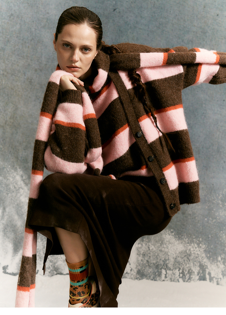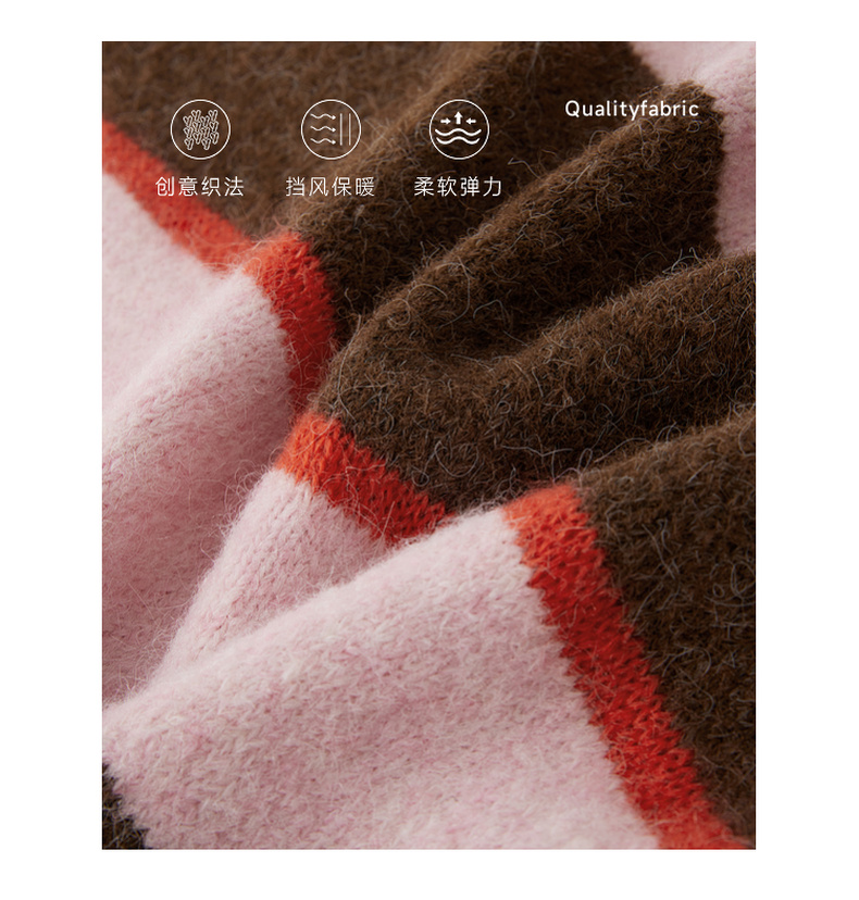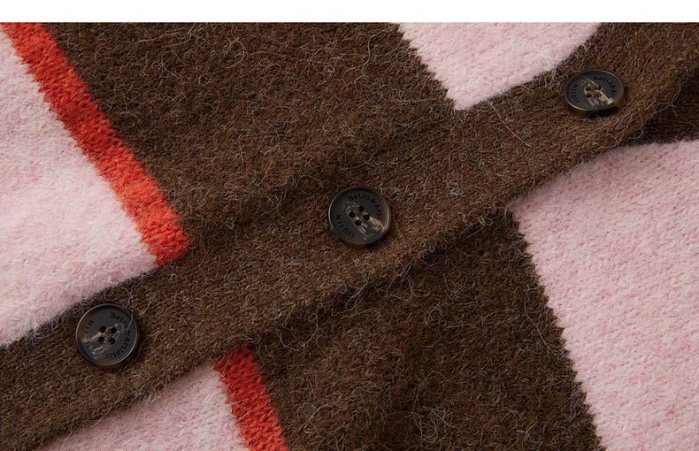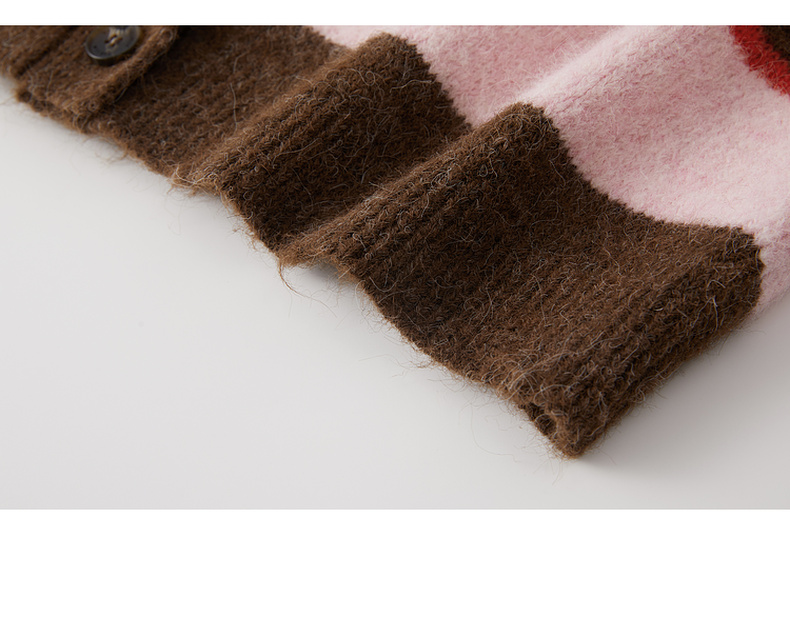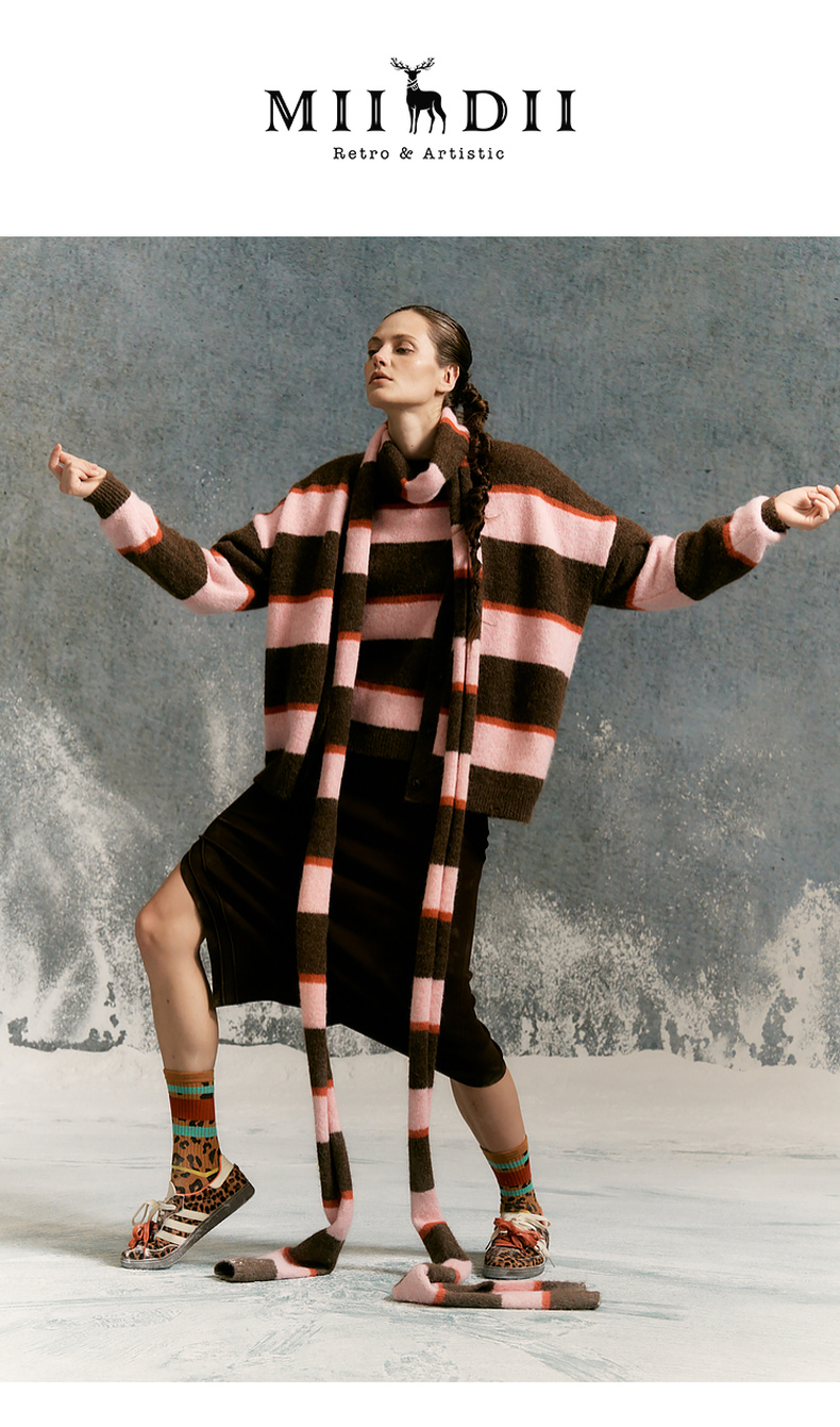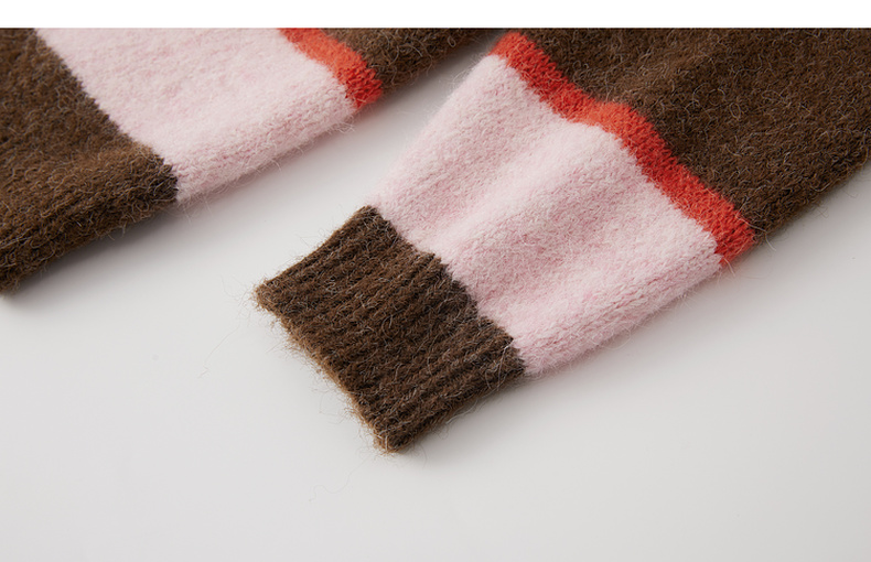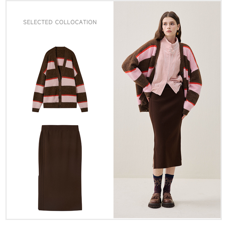 谜底V领针织开衫长袖2025年冬季新品亲肤柔滑条纹毛衣女254MZ1905