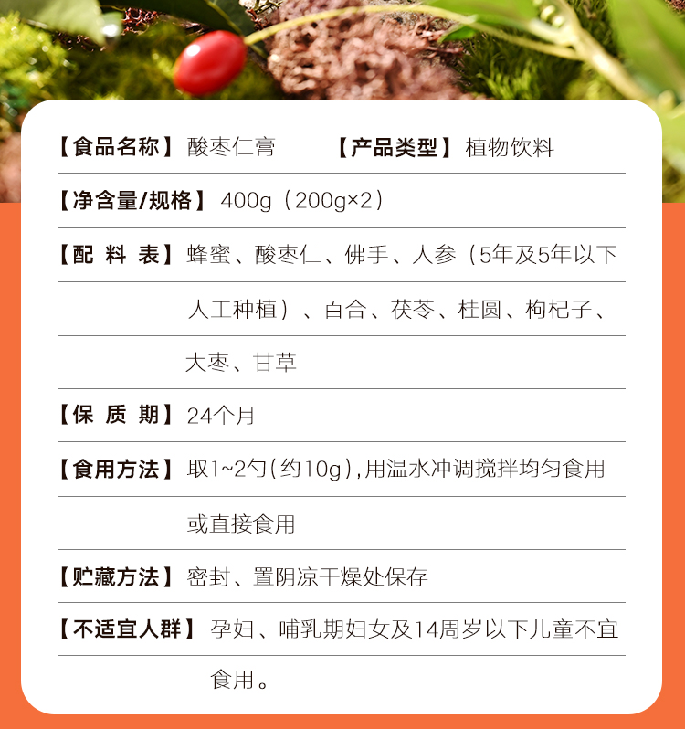 股-广誉远 酸枣仁膏400g(200g×2瓶)
