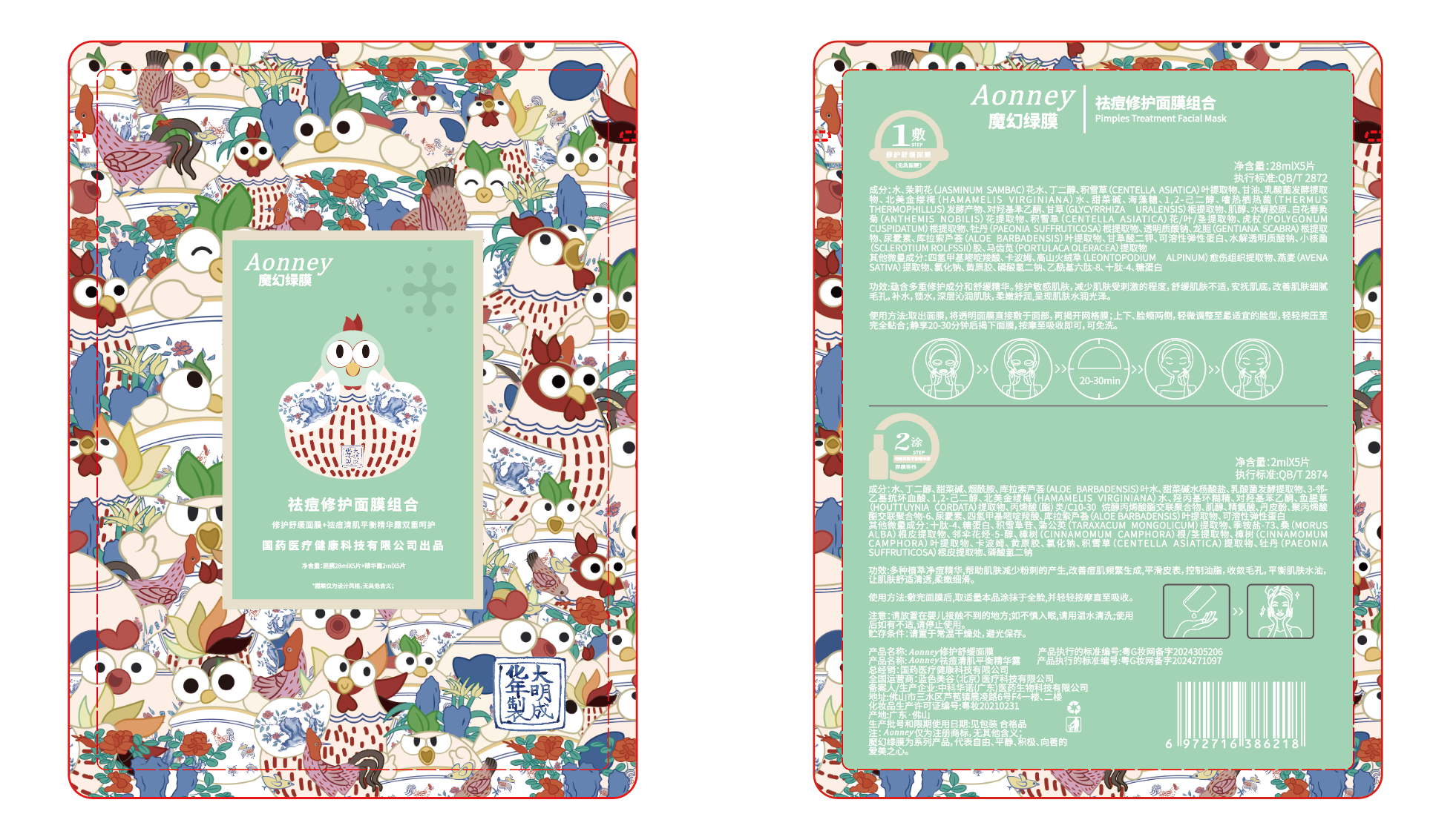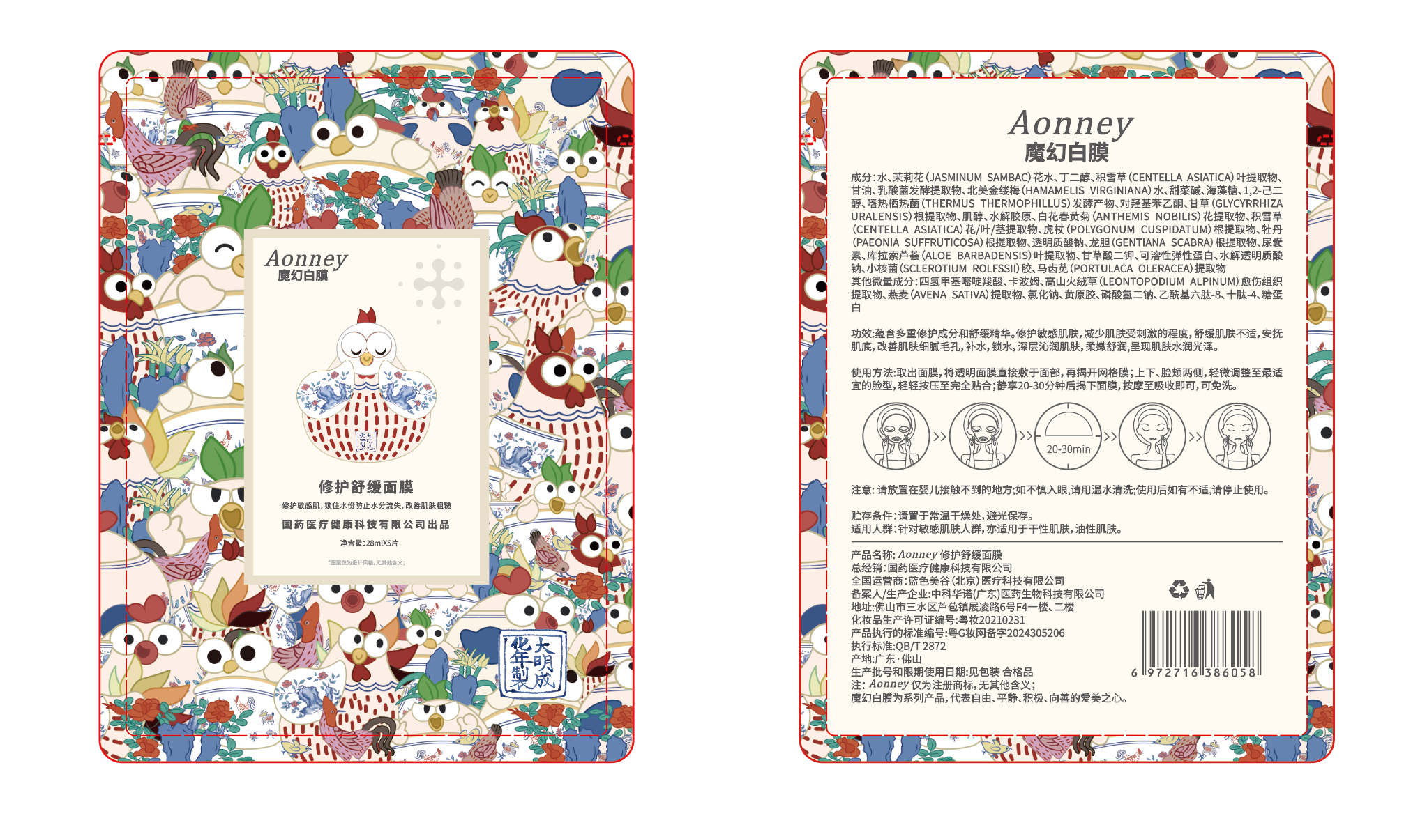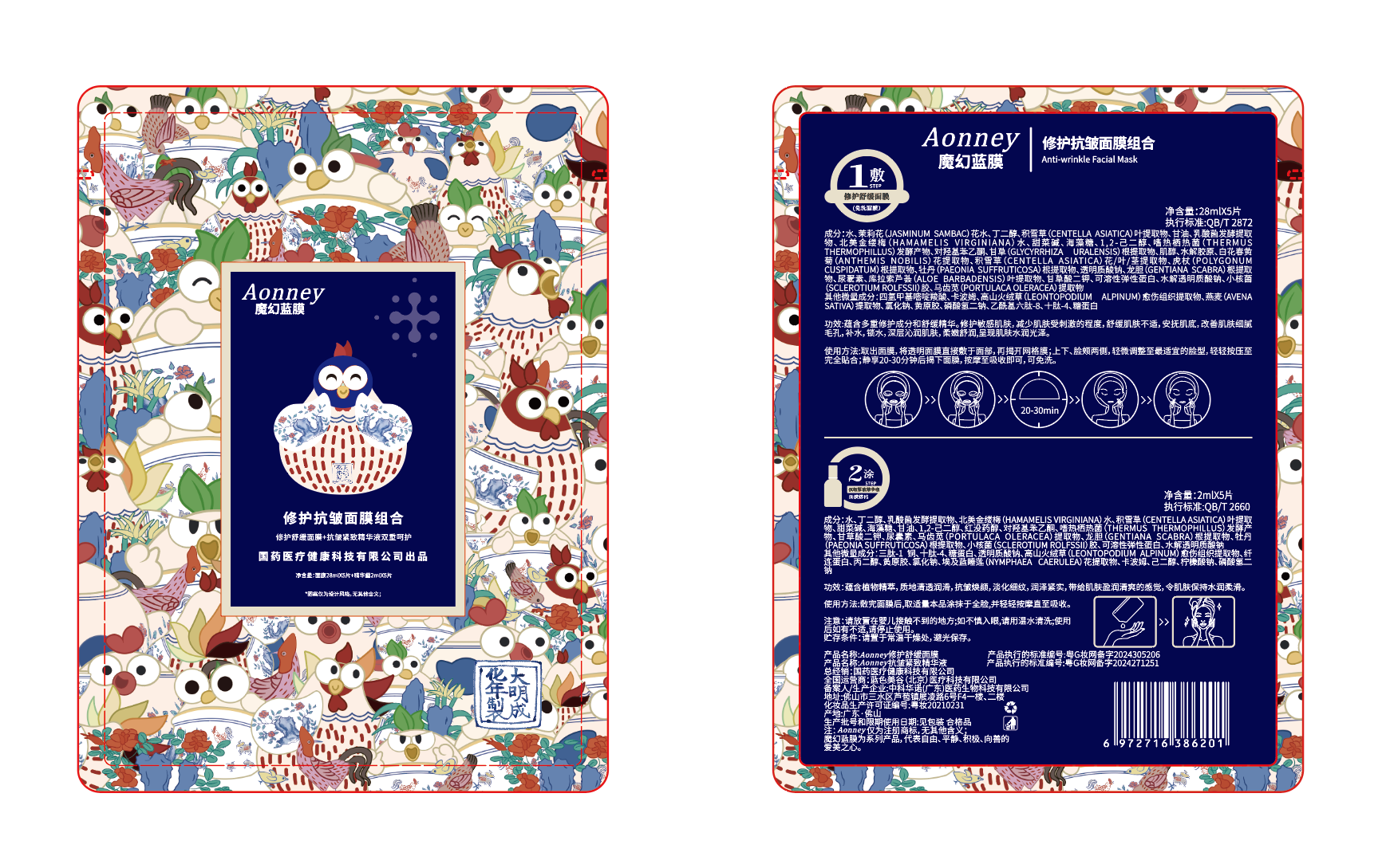 【自营】国药健康Aonney魔幻面膜礼品装(含吉祥如意款白膜*2+蓝膜*1+绿膜*1+礼品袋*1) 20片