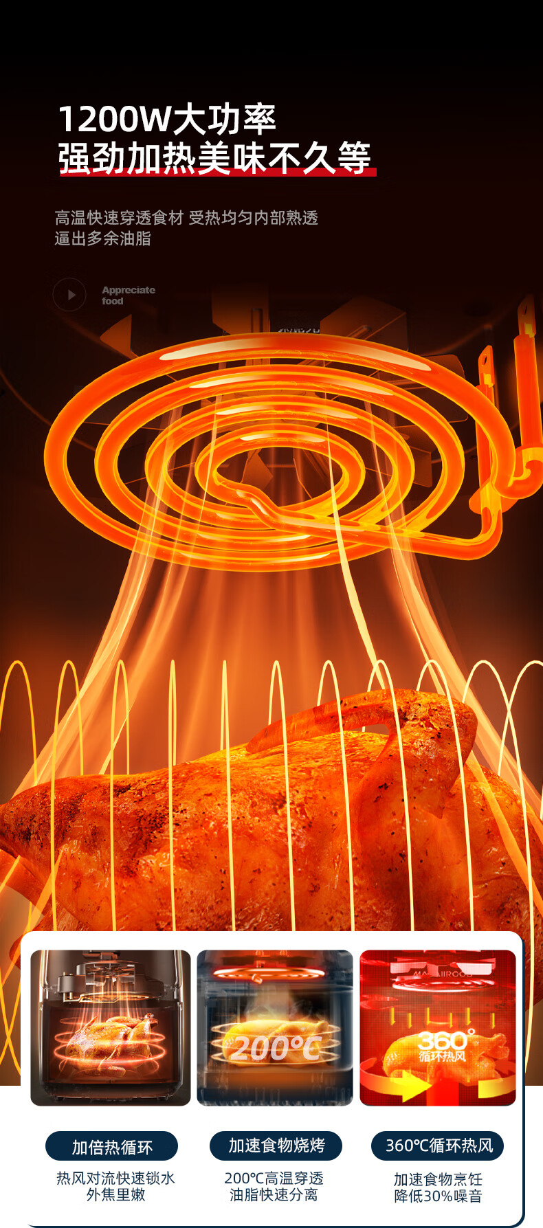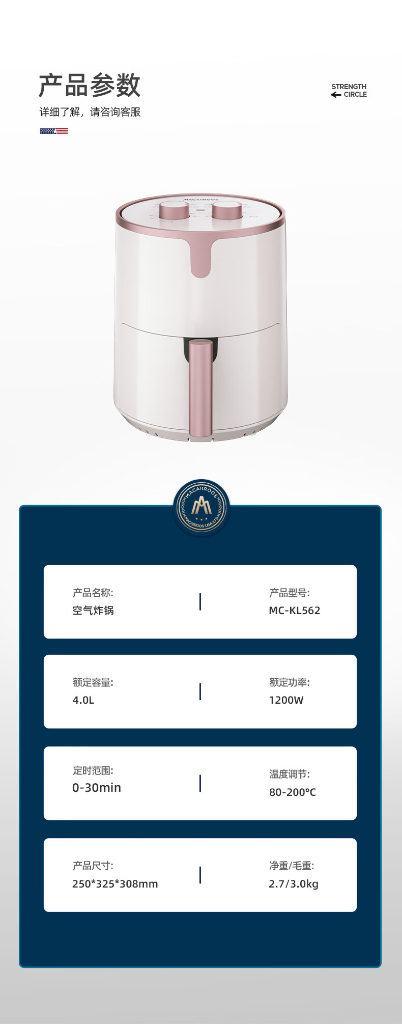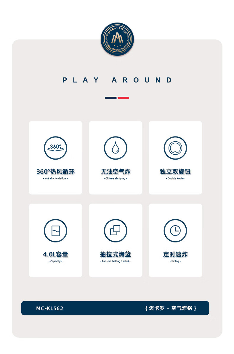 【小家电】迈卡罗MACAIIROOS空气炸锅家用大功率无油烟电炸锅烤箱炸薯条机 MC-KL562 HF
