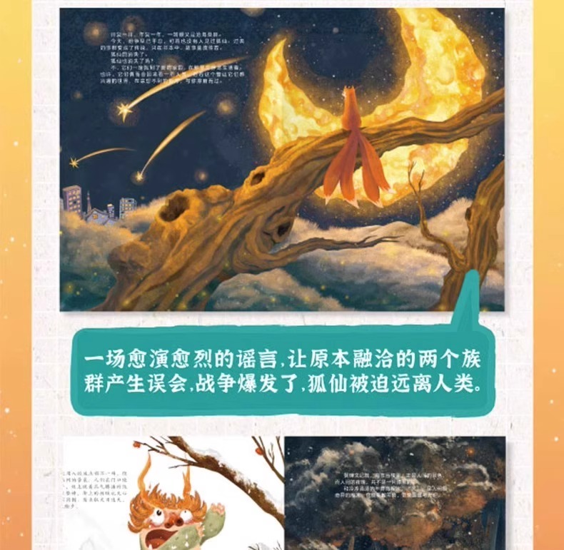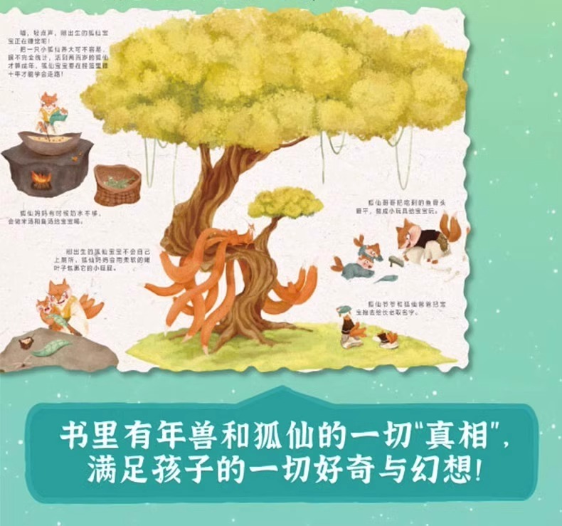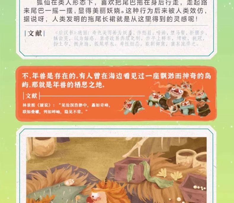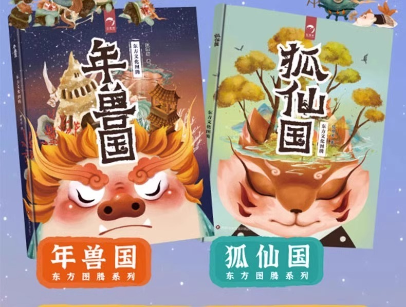 东方文化图腾系列全2册 年兽国+狐仙国 硬壳儿童绘本3一6岁幼儿中国神兽神话睡前故事书