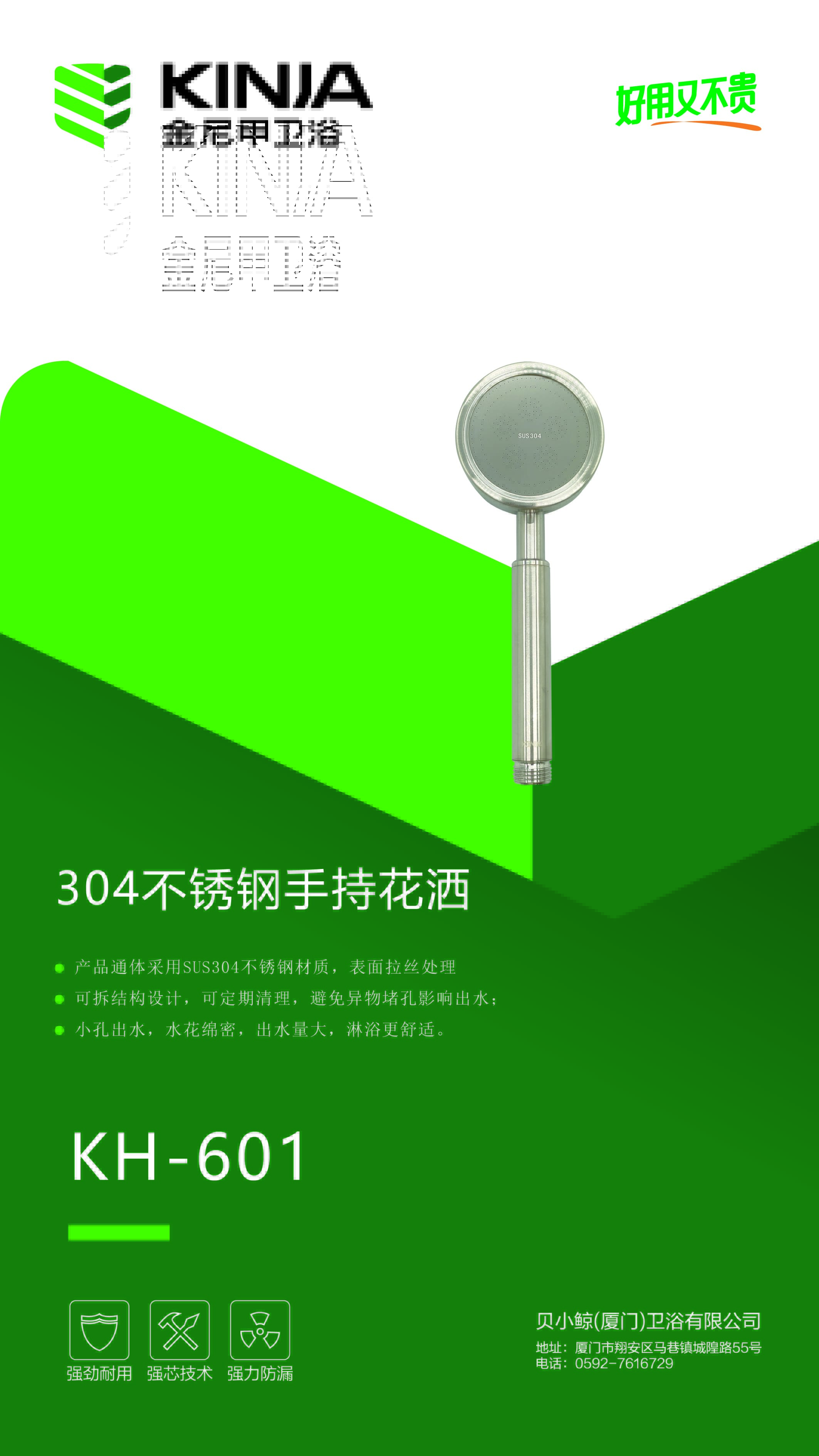 花洒/KH-601/单功能可拆洗增压/SUS304/盒装