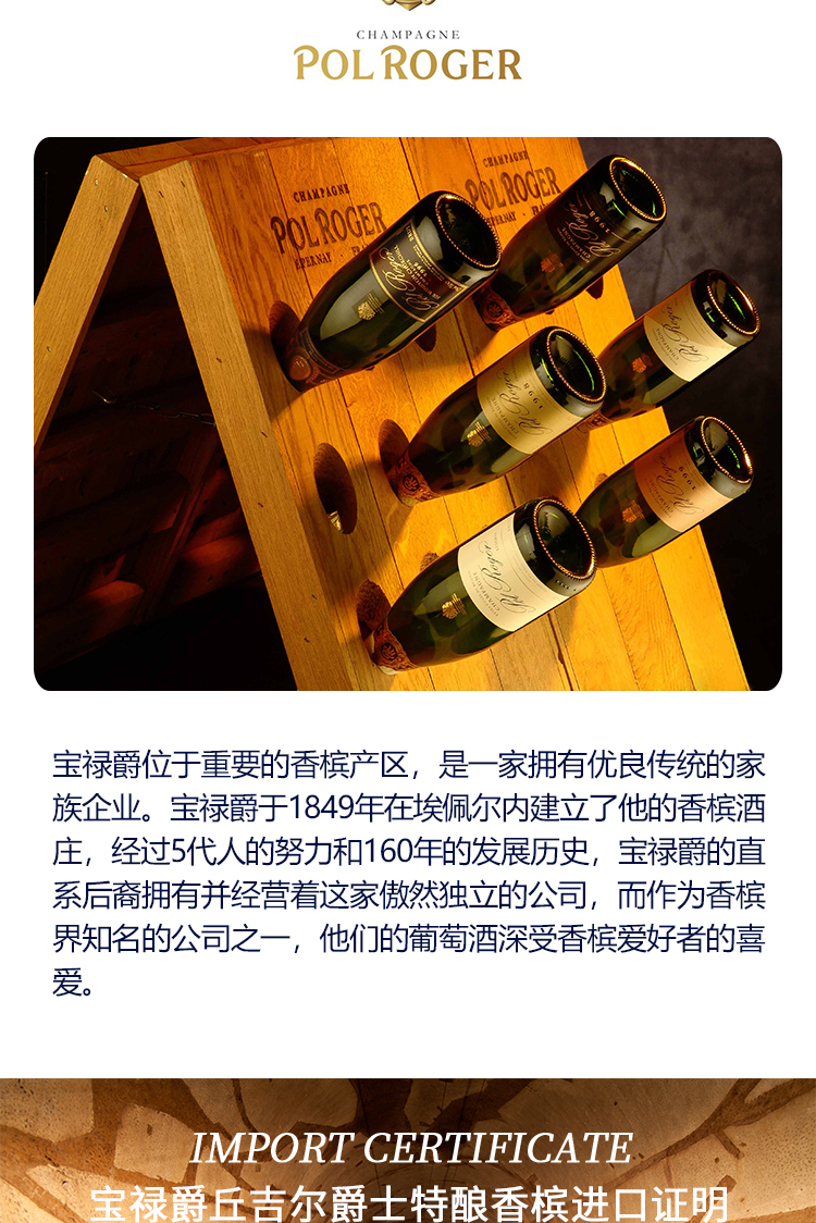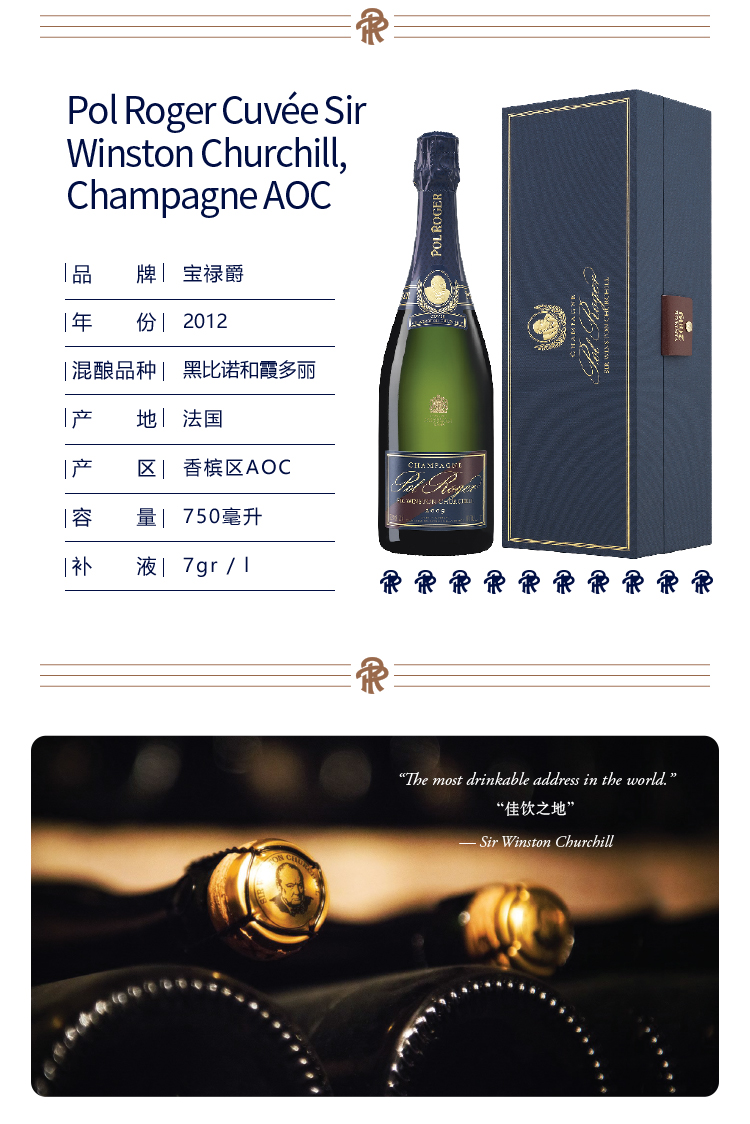 进口法国宝禄爵丘吉尔爵士特酿香槟(起泡葡萄酒)年份香槟750ml