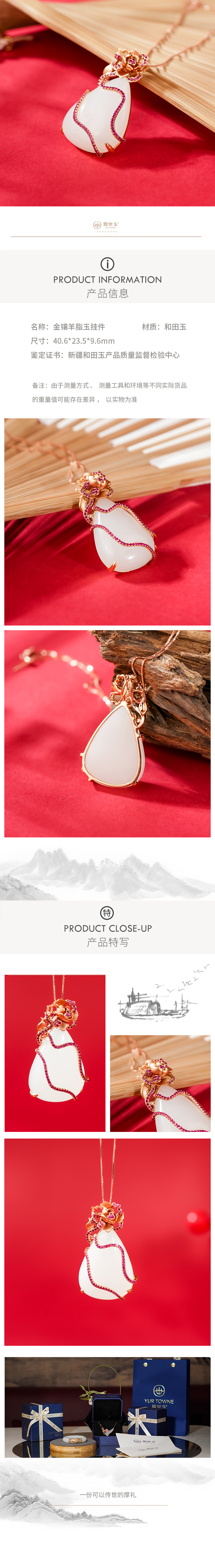 新疆国玉盟世玉【玫瑰故事】金镶玉吊坠【带证书·顺丰物流】