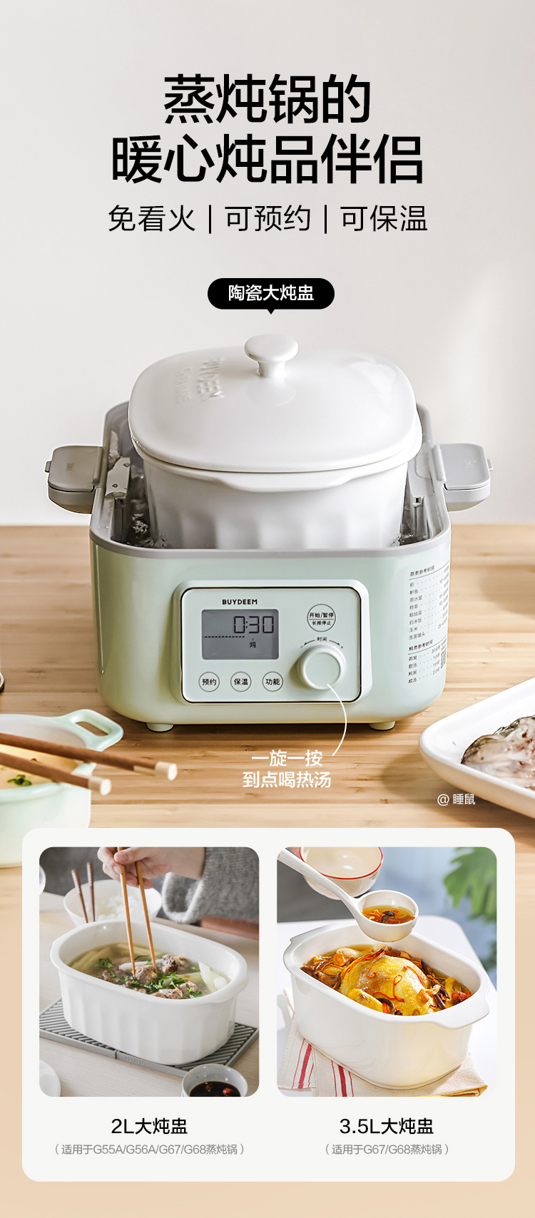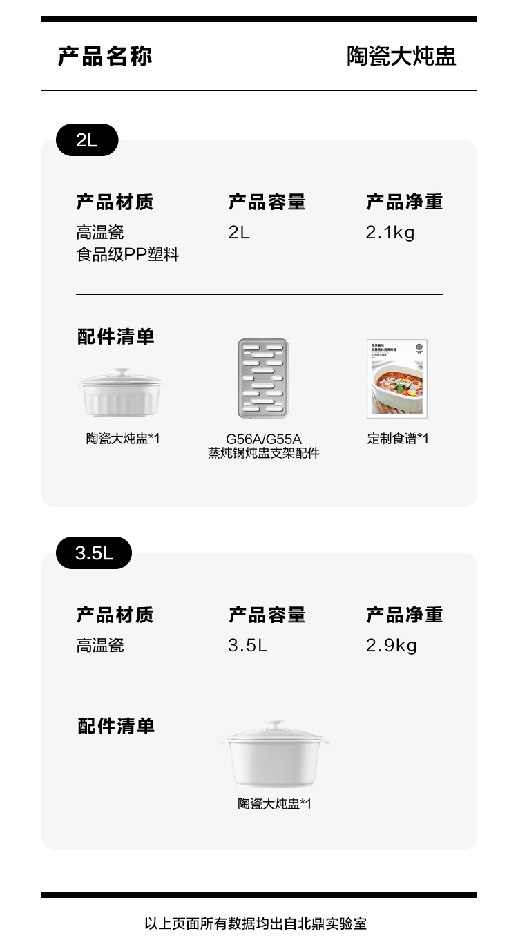 【专柜-北鼎】蒸炖锅配件-陶瓷大炖盅适配G55/G56A/G67/G68大容量全家够喝