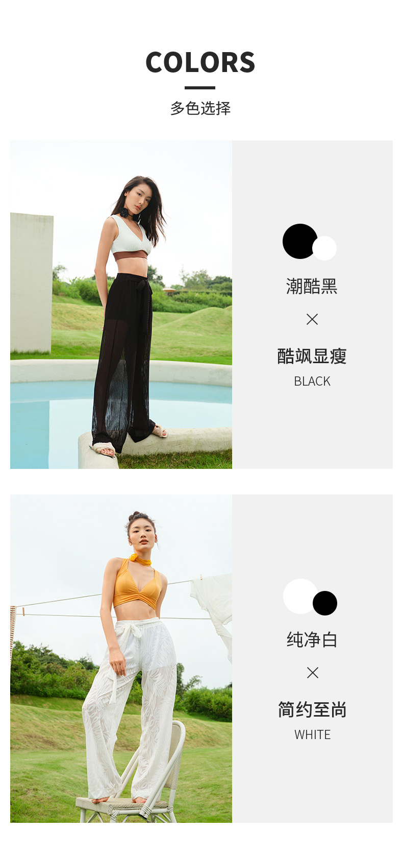 sisia2024新款泳衣女沙滩裤遮肚显瘦防晒宽松薄纱镂空半透明长裤SWC24-02A SWC24-03B