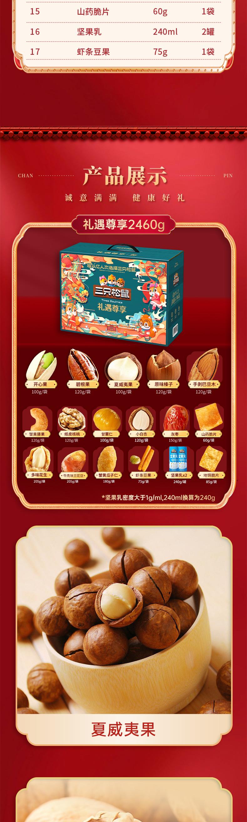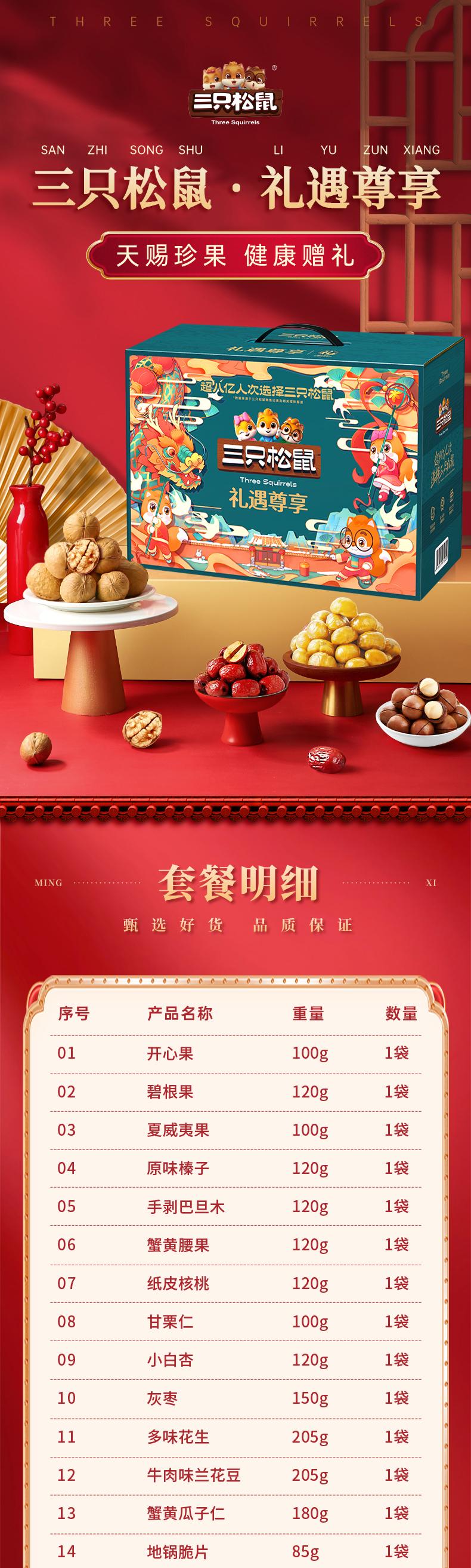 【三只松鼠】 礼遇尊享 坚果礼盒 约2.46kg18袋装