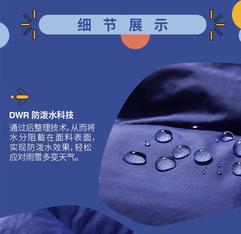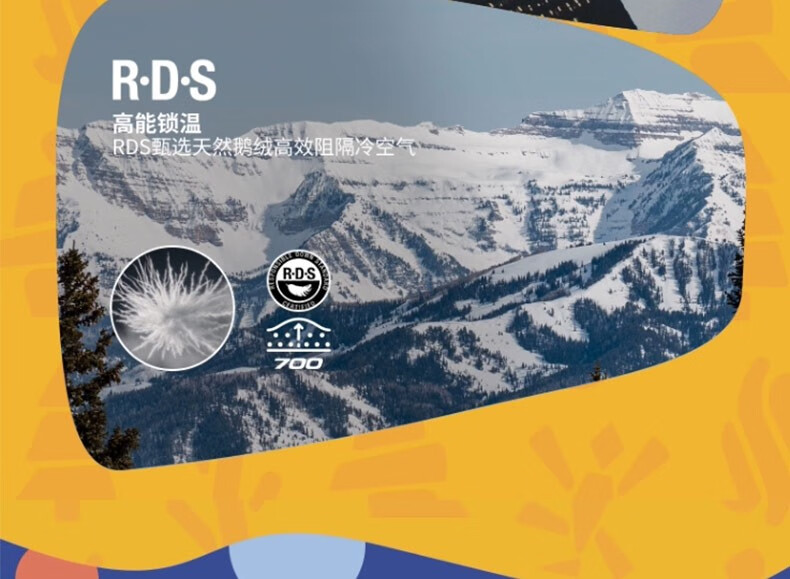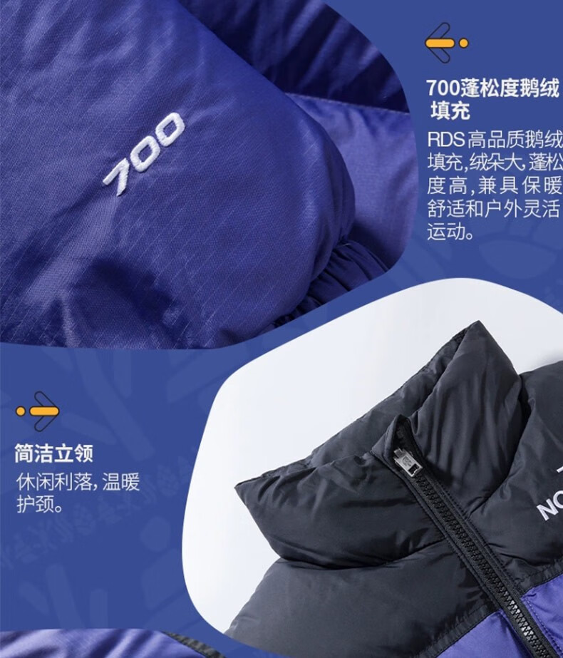 【产品材质】:填充物:鹅绒,蓬松度700+,面料防风防水,细格尼龙无胆防绒