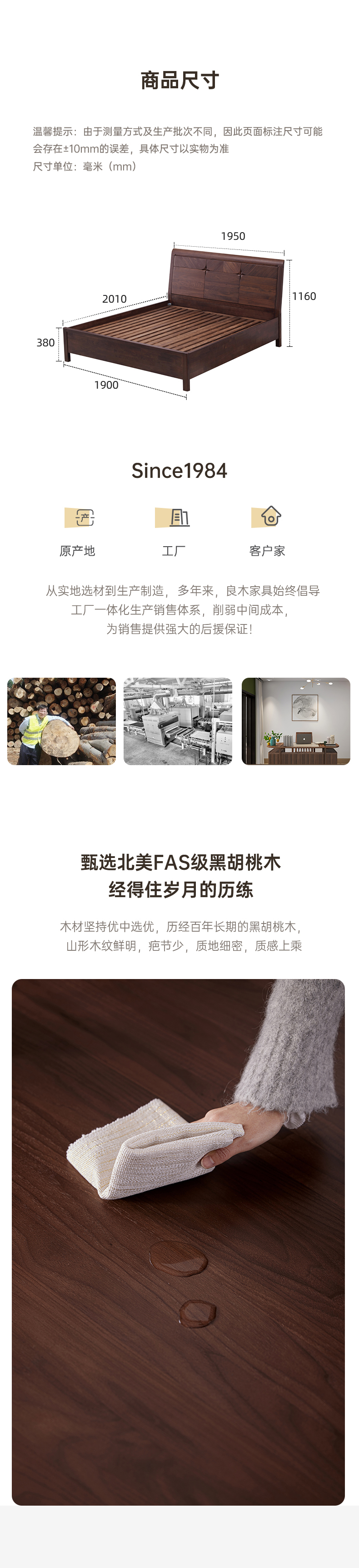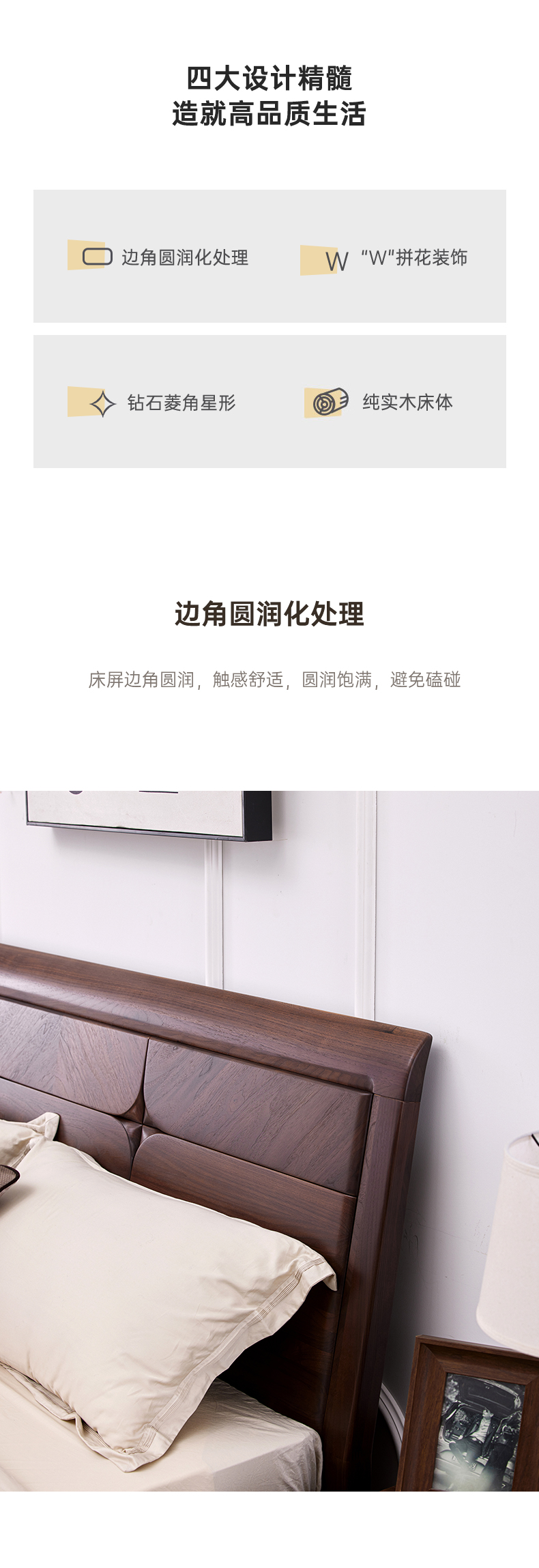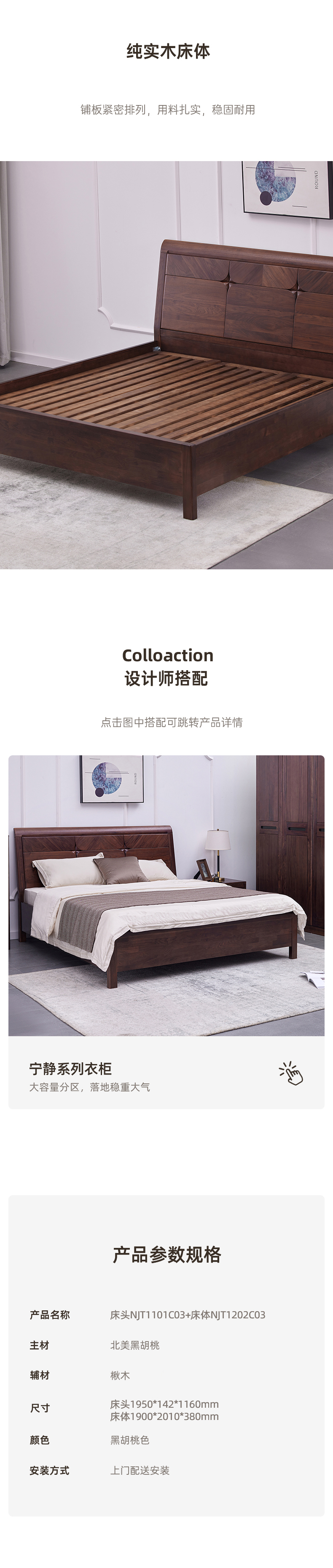 【现代实木风-NJT1101C03床】现代实木/现代简约/卧室/北美黑胡桃/实木大床