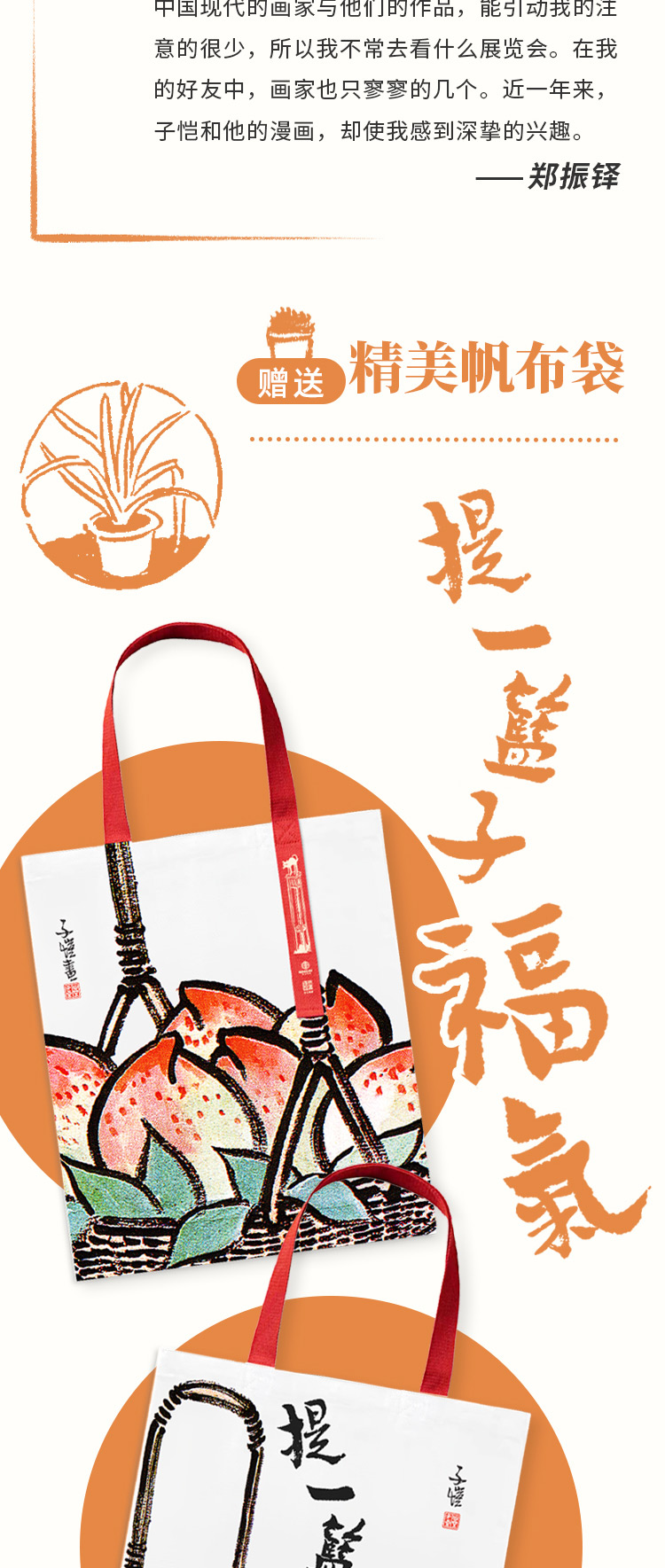 赠丰子恺画作帆布包,丰子恺“欢喜人间”系列作品集(全3册),人生若觉不快乐,那就读读丰子恺