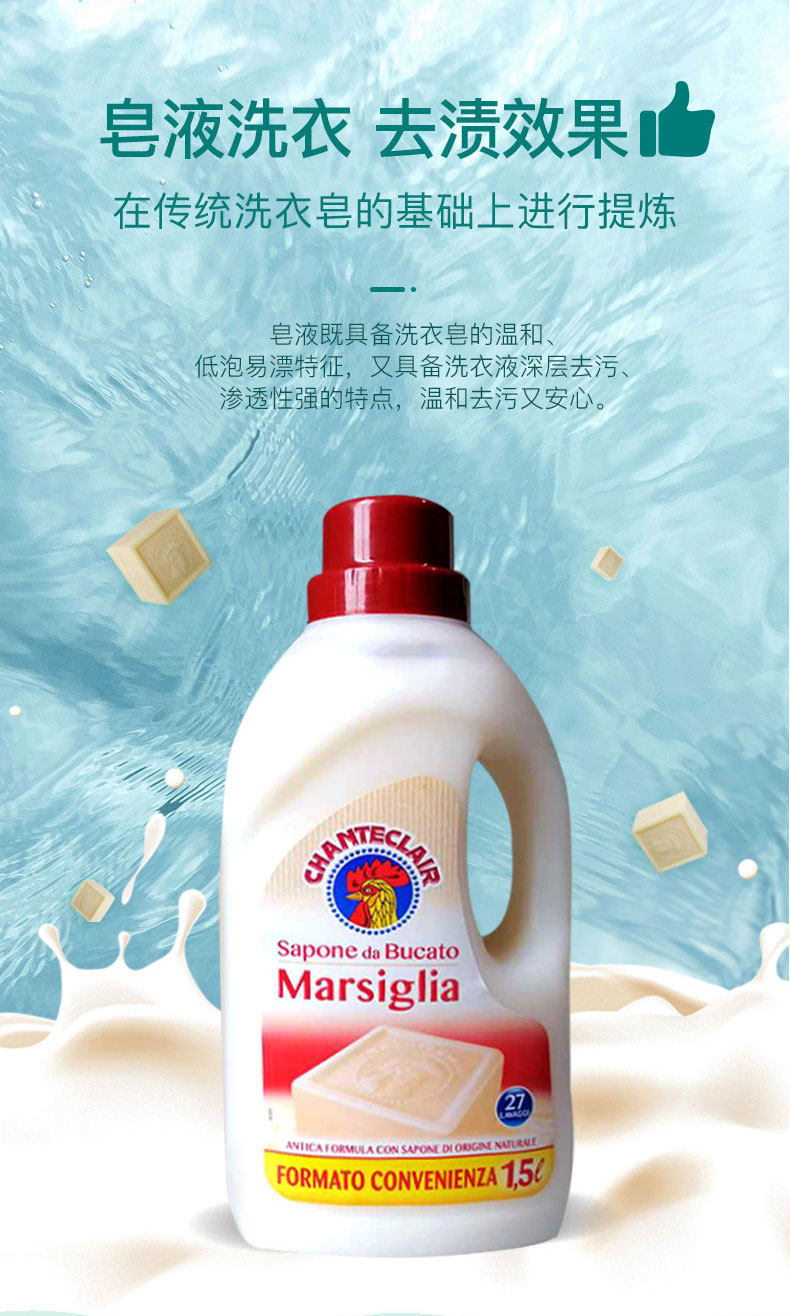 【大公鸡液态洗衣皂】Chante Clair/大公鸡管家 意大利原装进口业态洗衣皂 1500ml