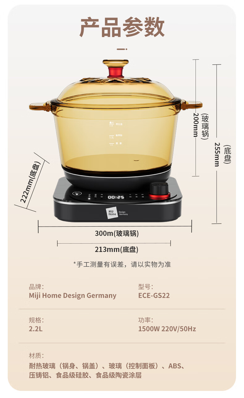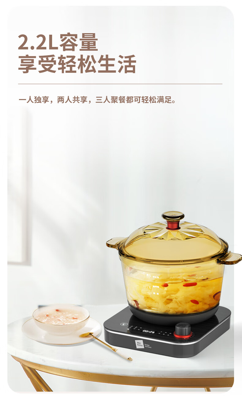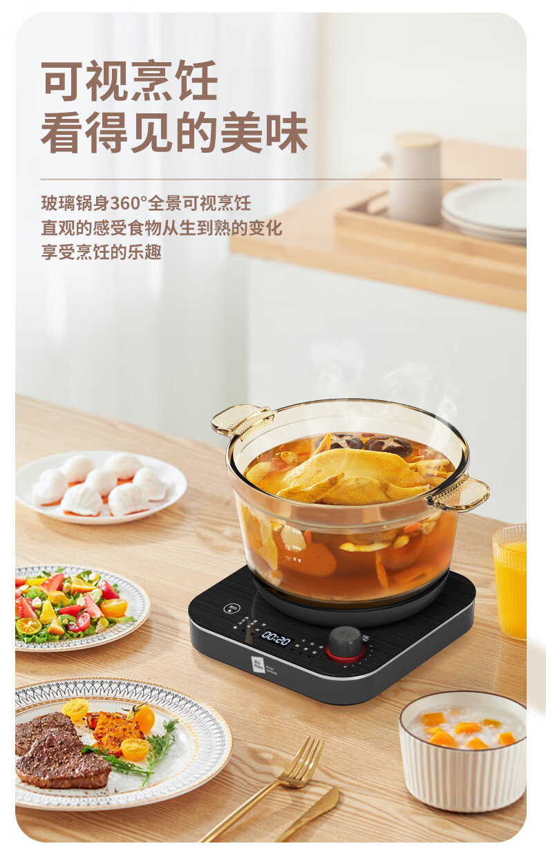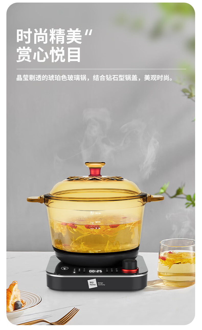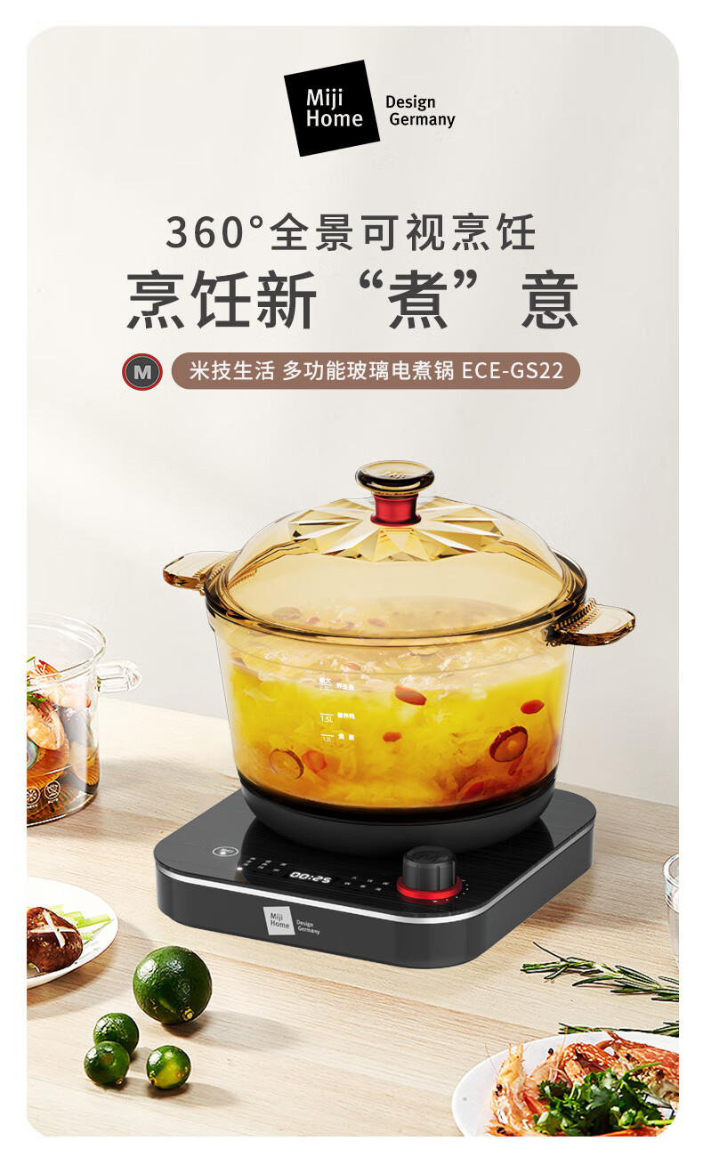 【小家电】米技生活 (Miji Home)多功能锅玻璃电煮锅2.2升 ECE-GS22 HF