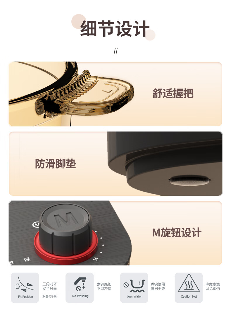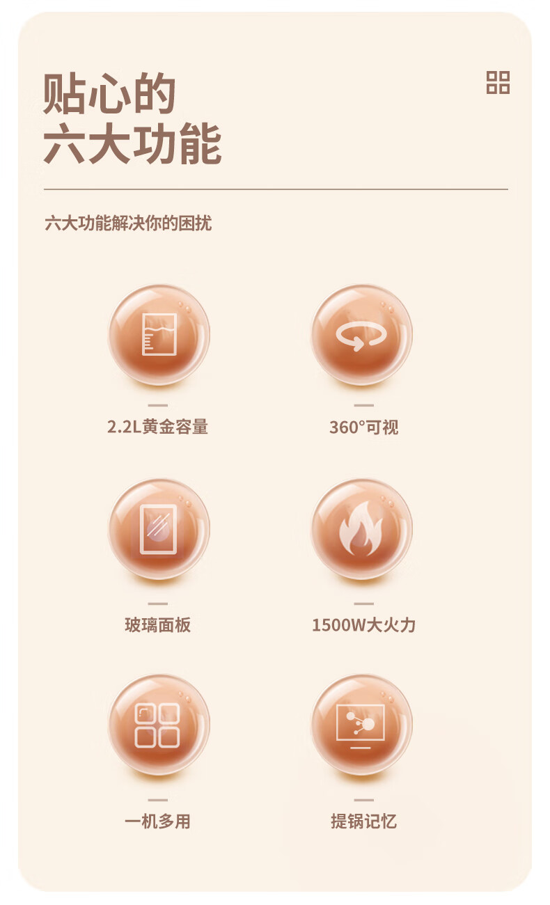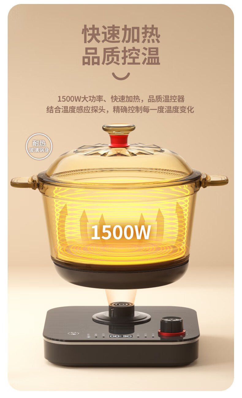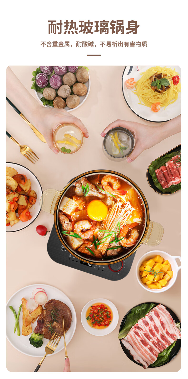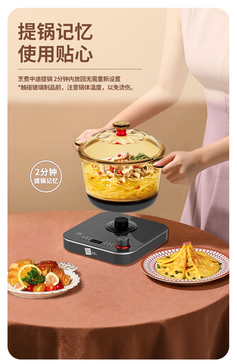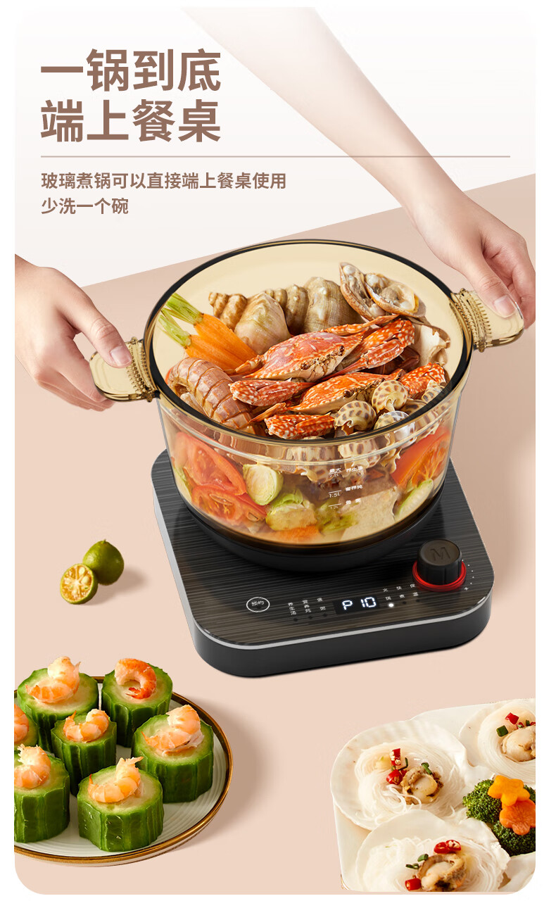 【小家电】米技生活 (Miji Home)多功能锅玻璃电煮锅2.2升 ECE-GS22 HF