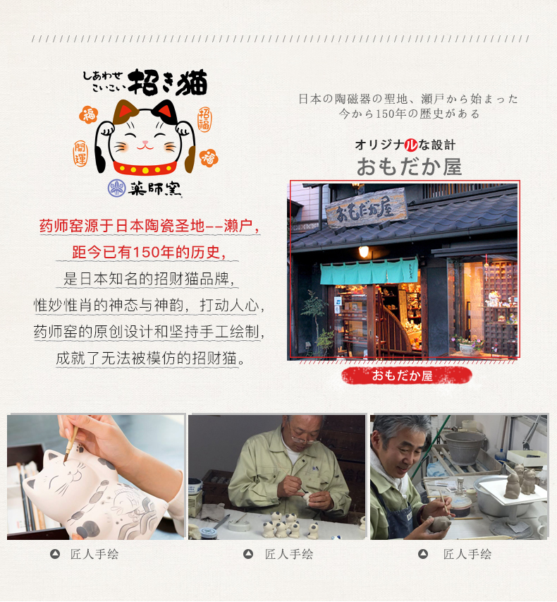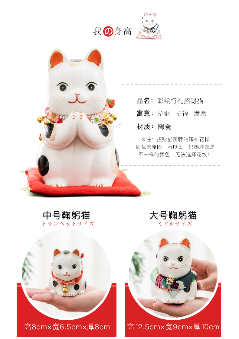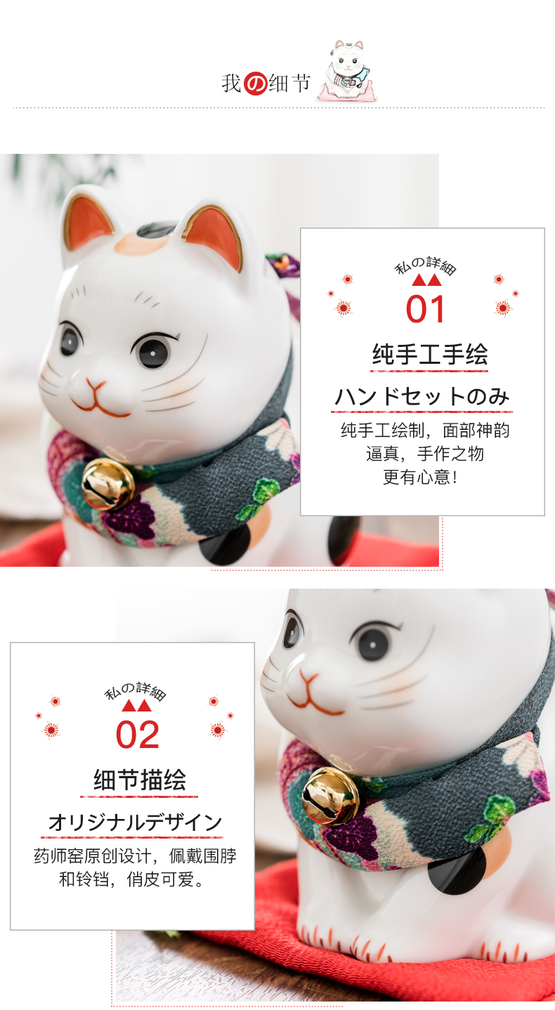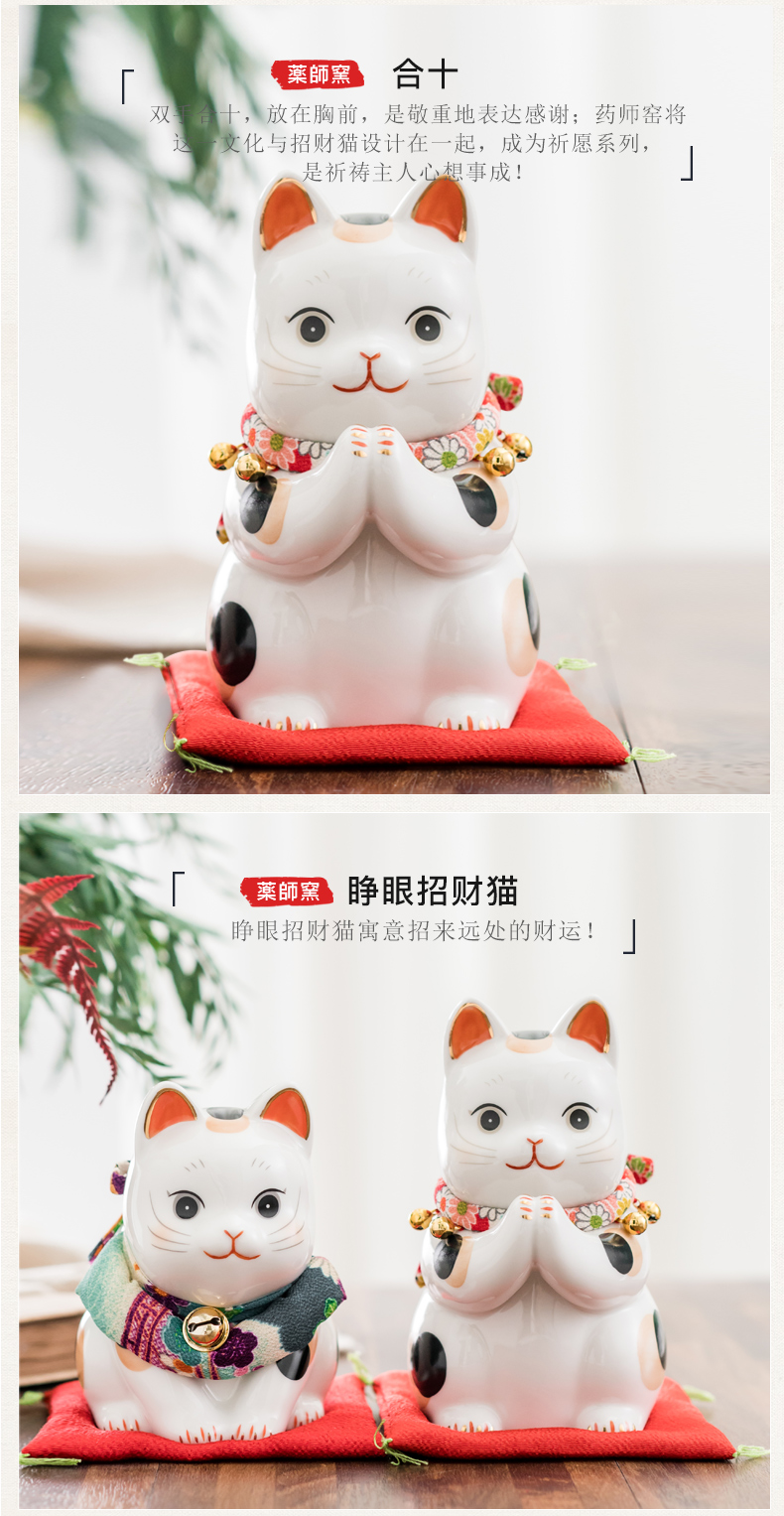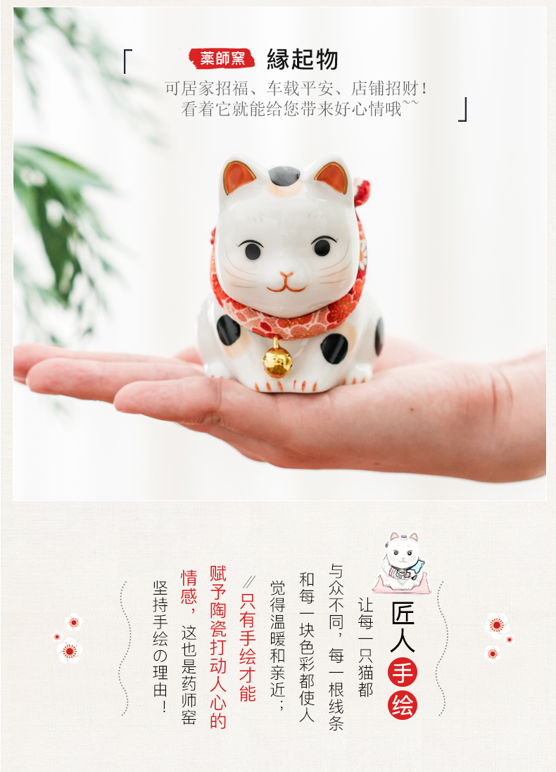 日本药师窑招财猫大号彩绘祈愿招财猫(储蓄罐款)