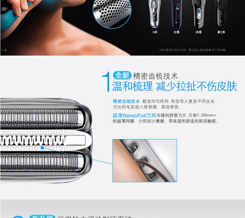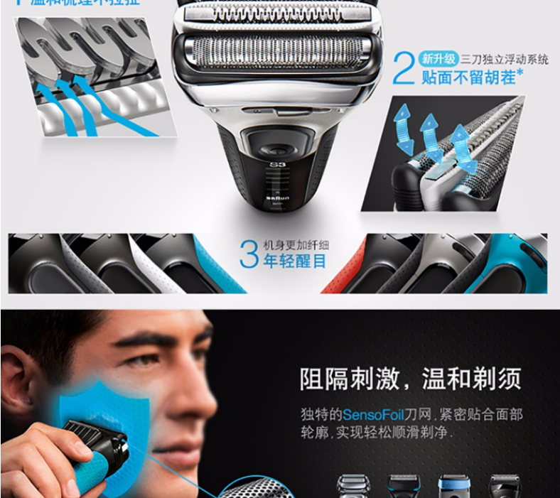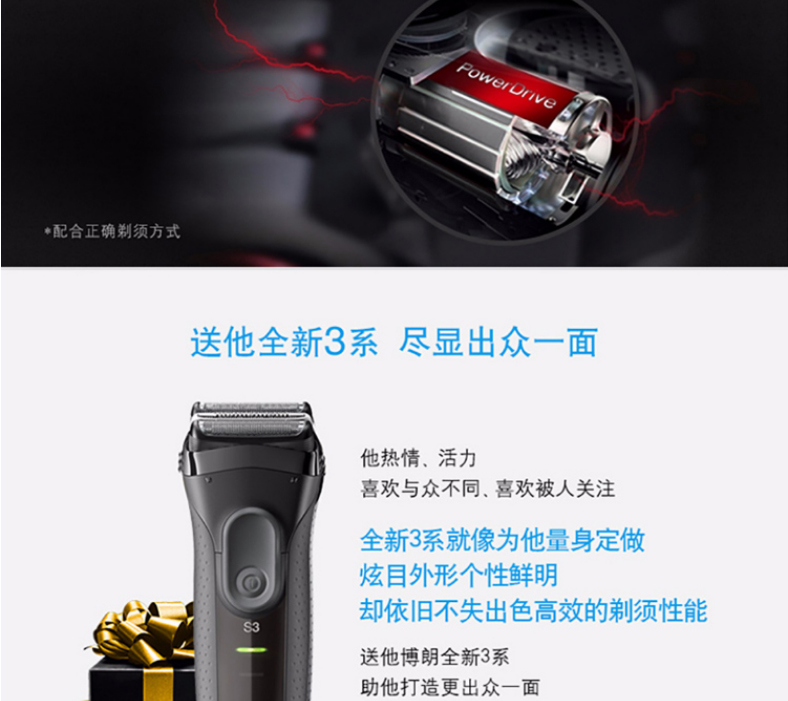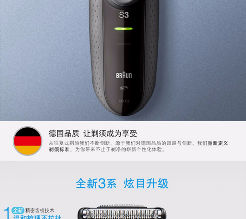 博朗剃须刀全身水洗往复式刮胡刀德国进口三刀头3系3000BT
