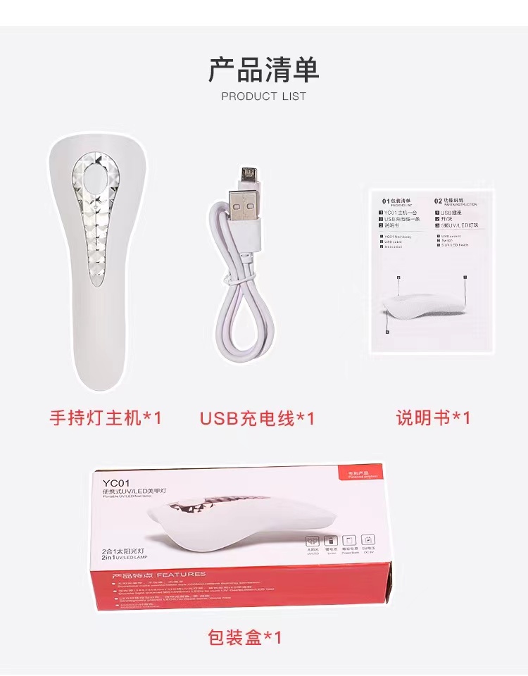 日式18W手持美甲红光灯迷你无线充电款UV/lED光疗烤灯便携速干不黑手