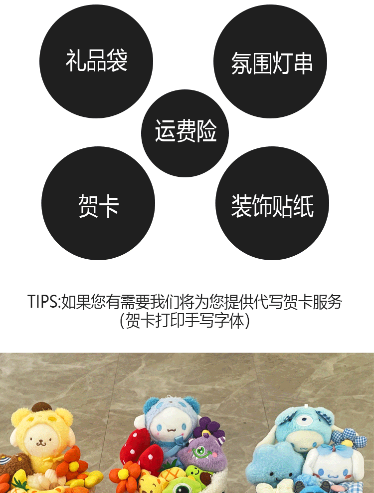 【缘来是你=礼袋+灯串】七夕情人节,毕业季,生日礼物。三丽鸥库洛米KT毛绒玩偶花束成品娃娃,童话般的浪漫。