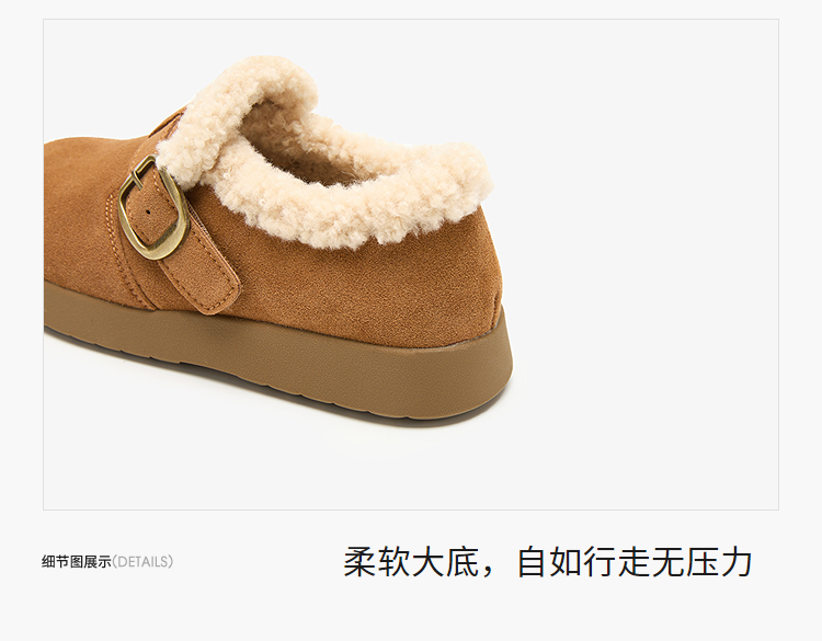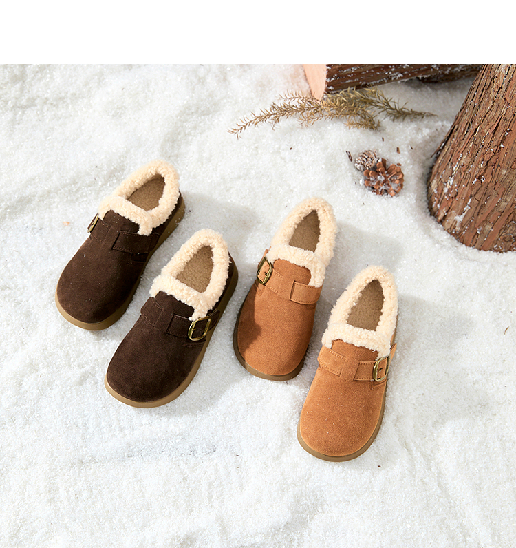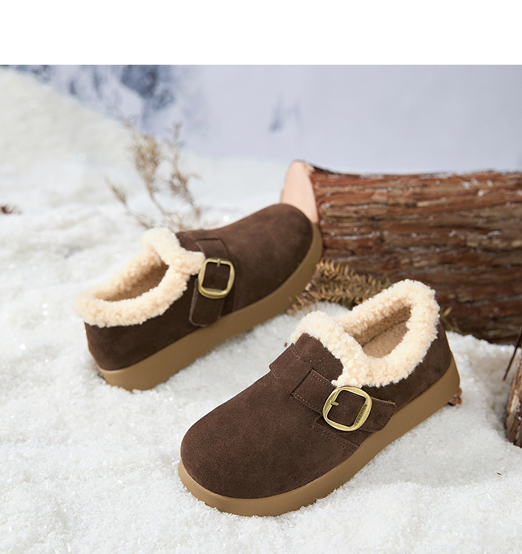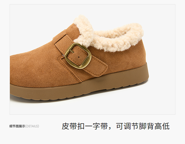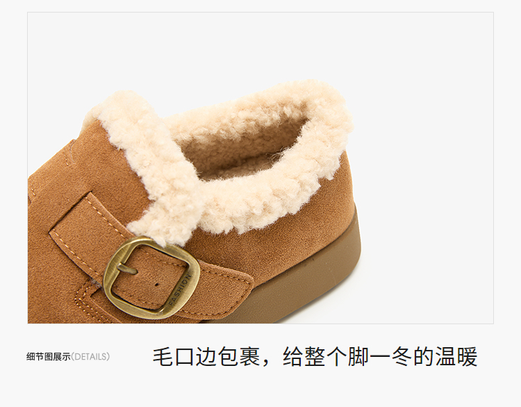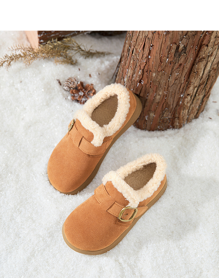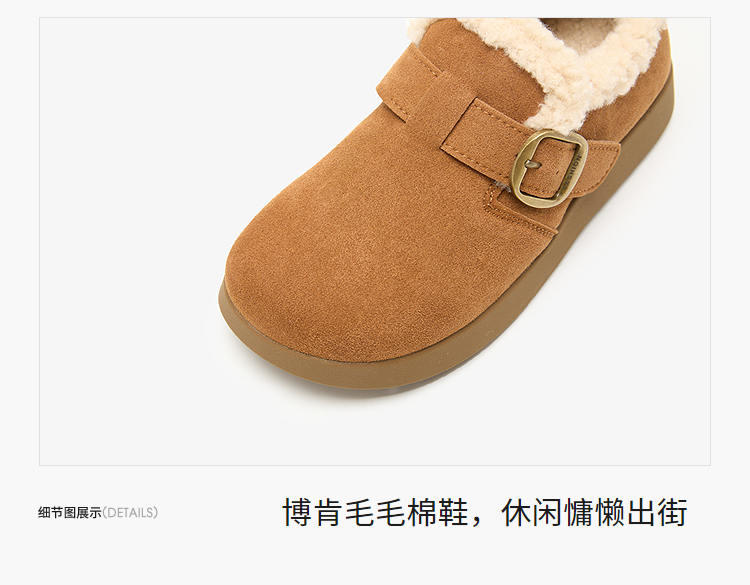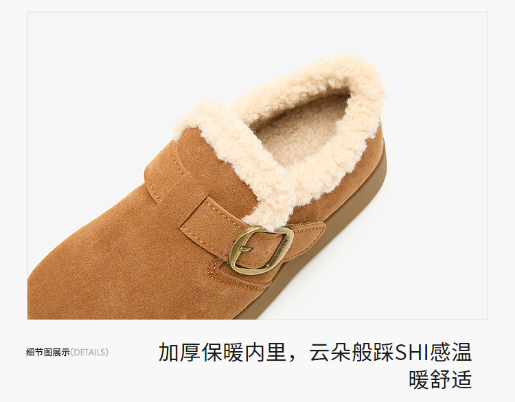 西遇毛毛勃肯鞋女新款秋冬一脚蹬外穿保暖加绒棉鞋厚底雪地靴V2257293