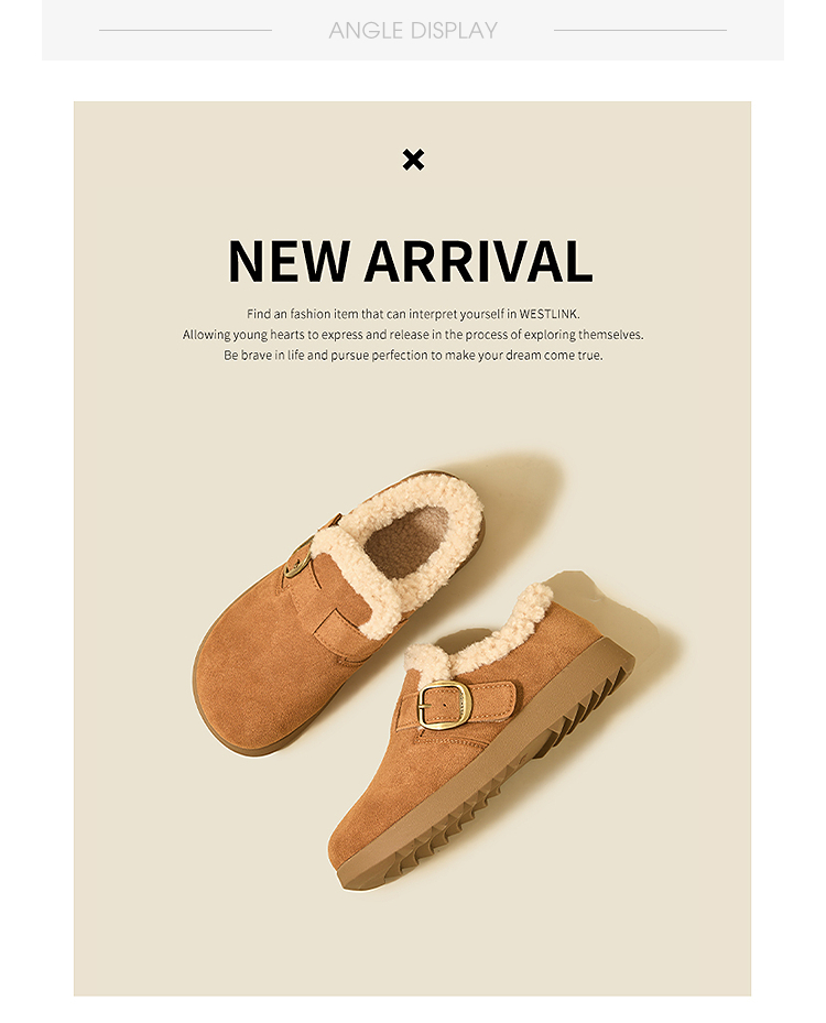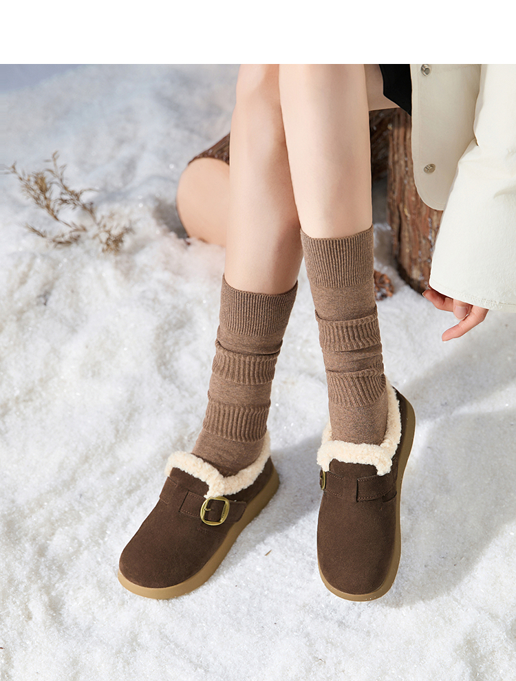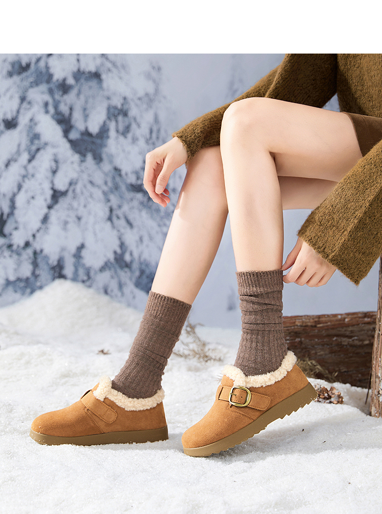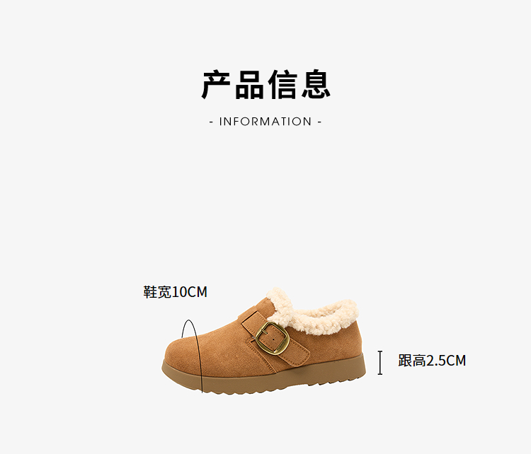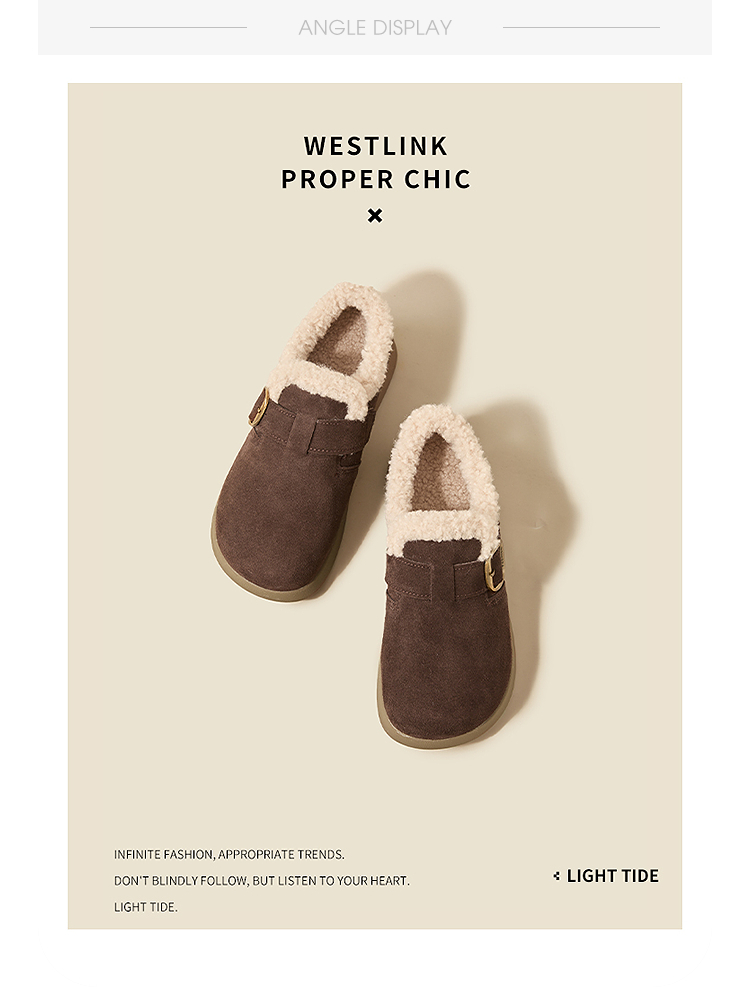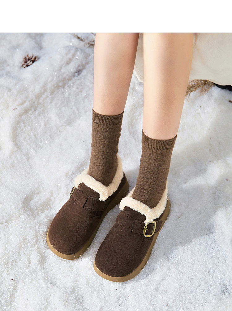 西遇毛毛勃肯鞋女新款秋冬一脚蹬外穿保暖加绒棉鞋厚底雪地靴V2257293