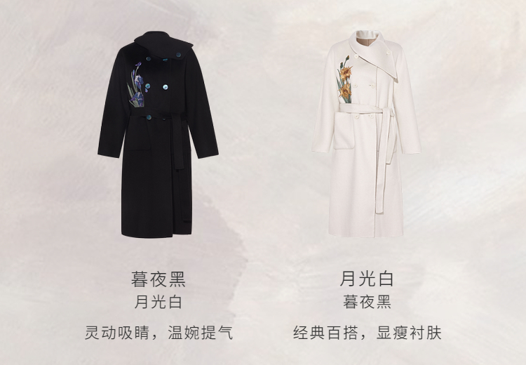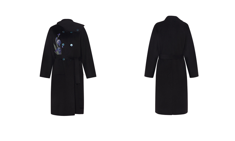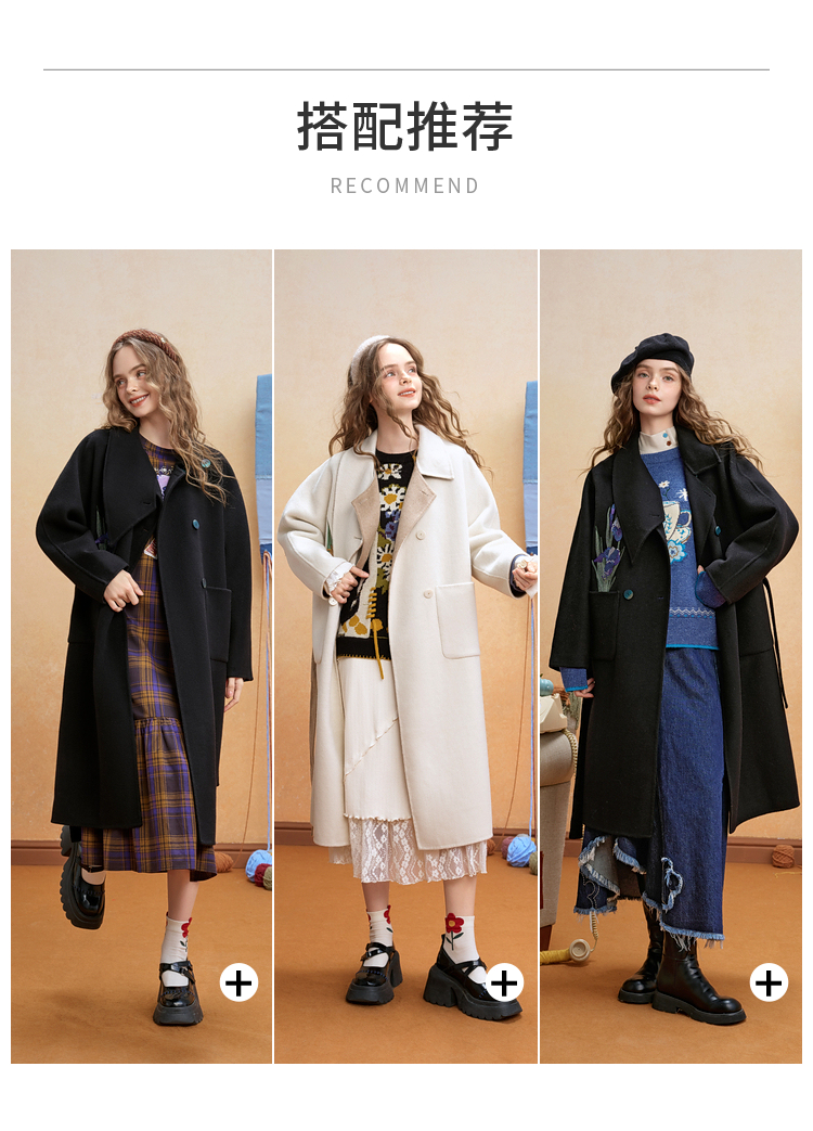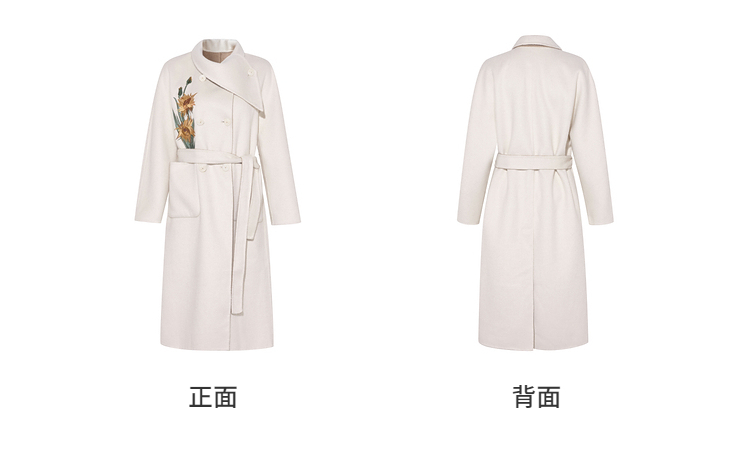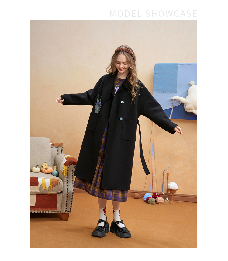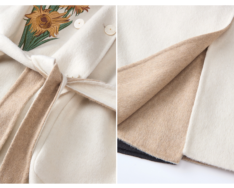 【暖冬内购】两三事梵高文艺花间月眠2025冬新款绣花围脖翻领双面羊毛呢外套女