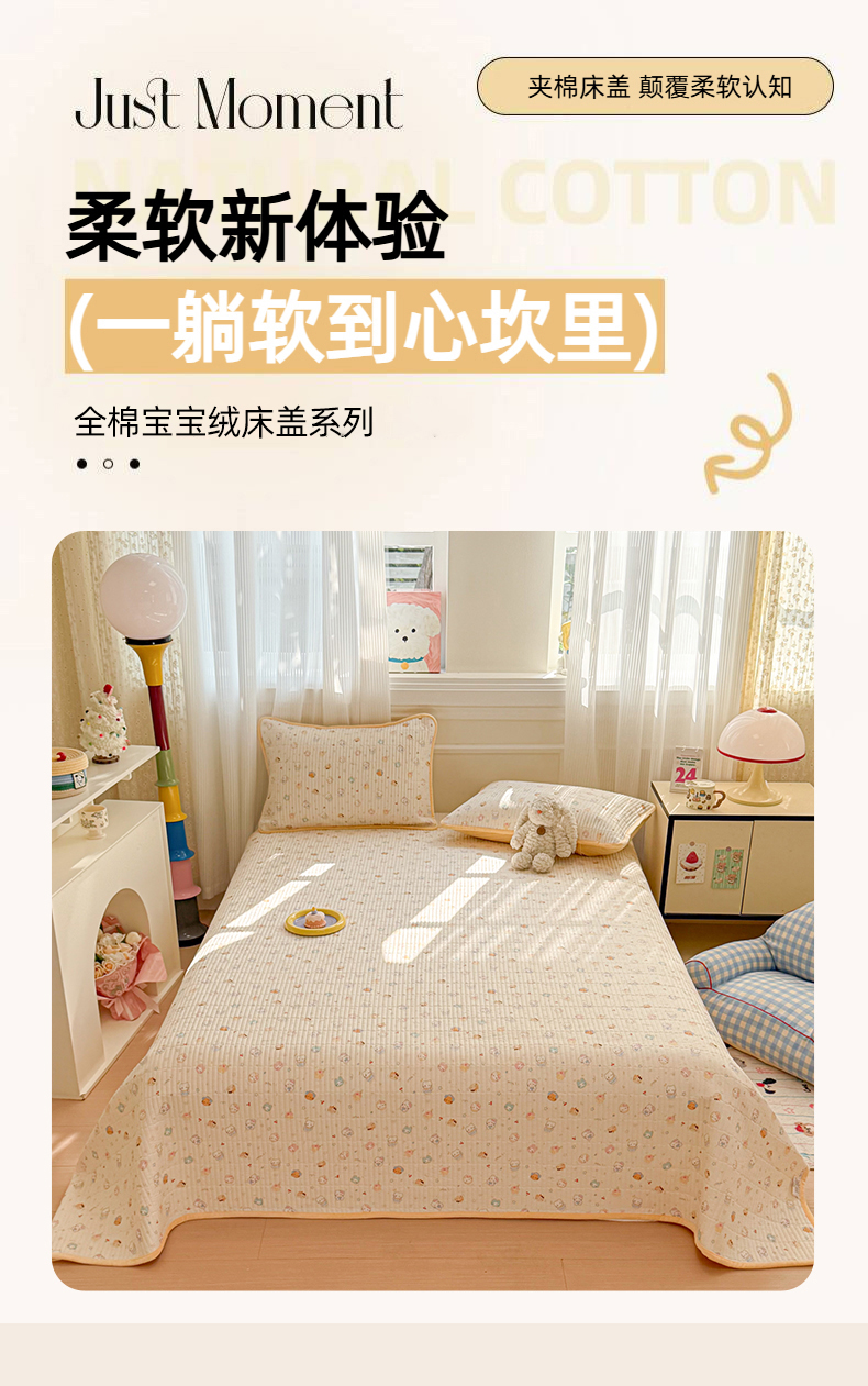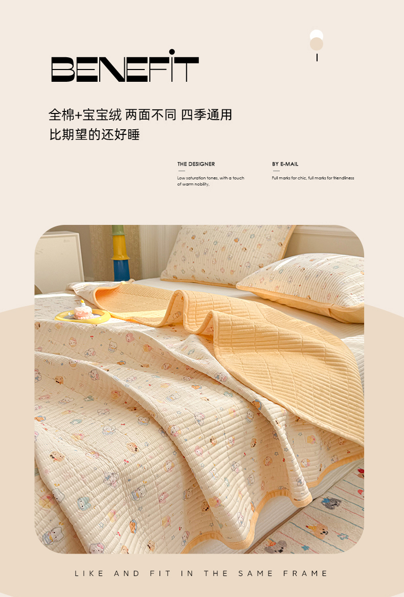 自然醒全棉宝宝绒棉绒床盖正反两用JY