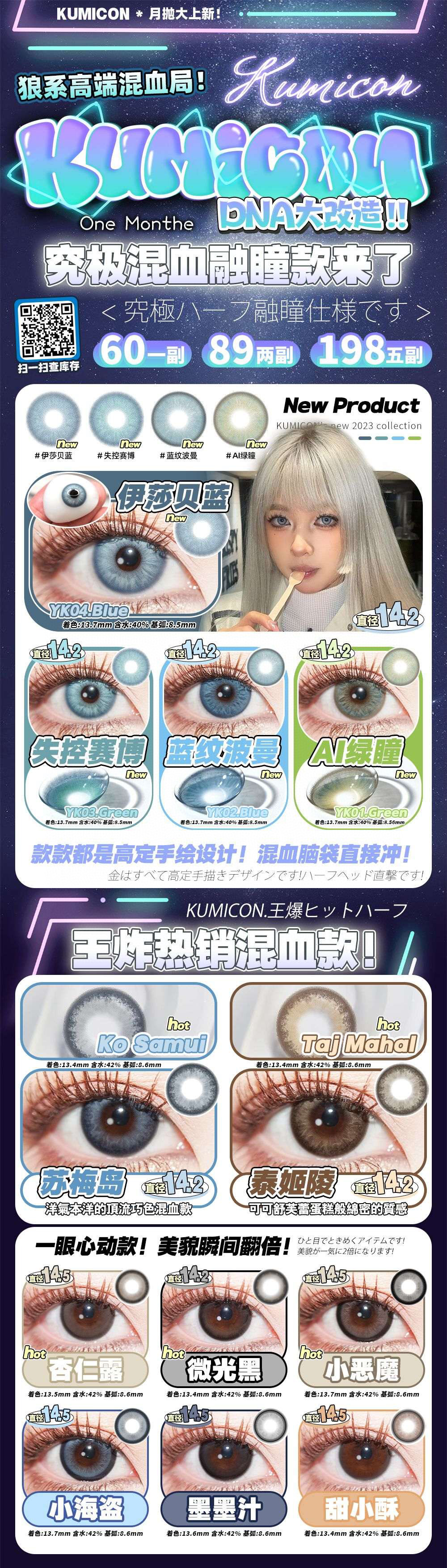 【常规-月抛活动】Kumicon 月抛-14.2mm-14.5mm-【月抛 度数0-800度 无525/575】长期活动