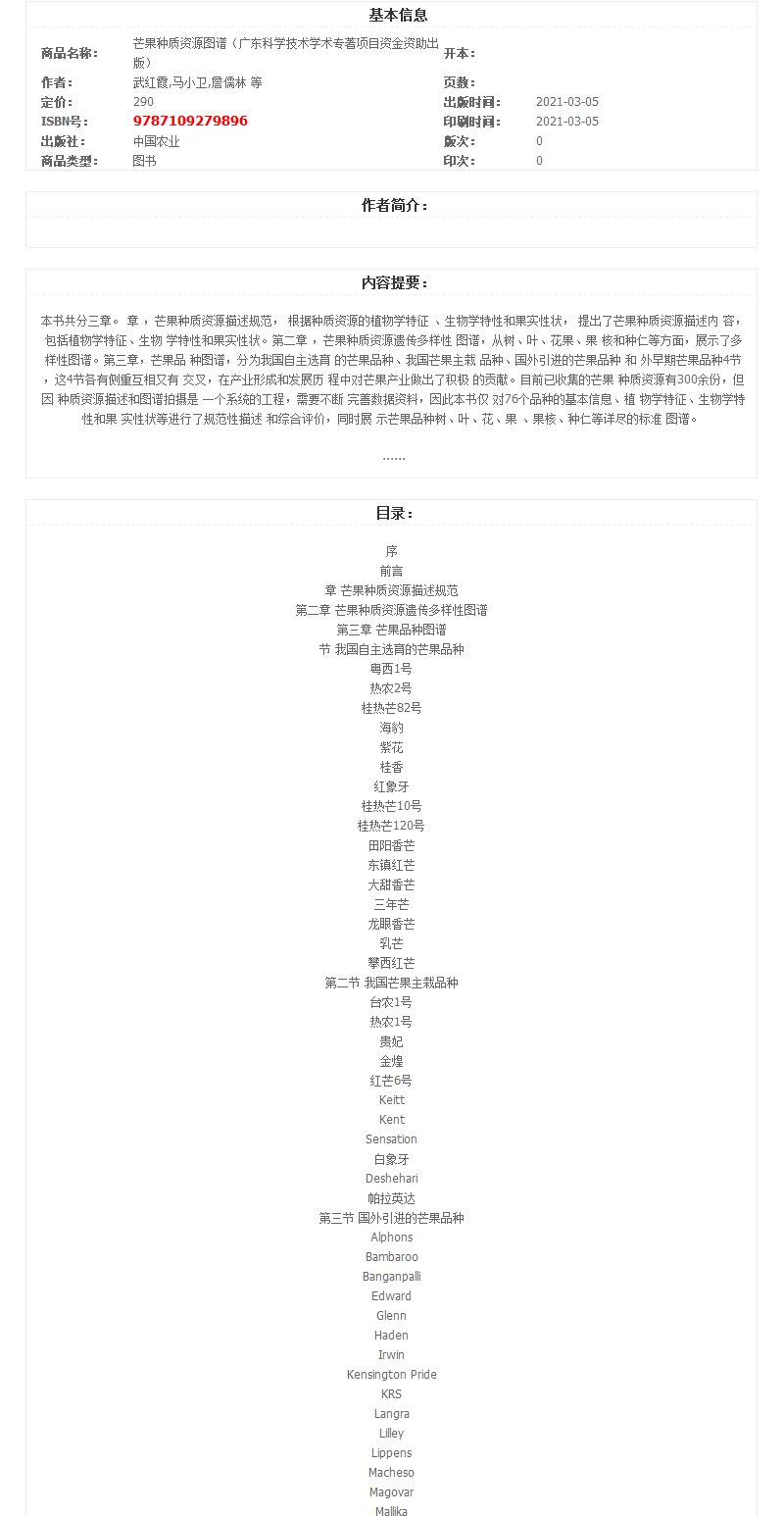 芒果种质资源图谱(广东科学技术学术专著项目资金资助出版)