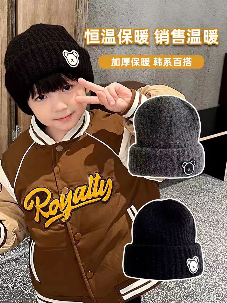 【简约设计,敲保暖帽子】1-7岁儿童帽子 男童秋冬季保暖针织帽 宝宝可爱时尚百搭毛线帽 学生洋气潮款-QQ