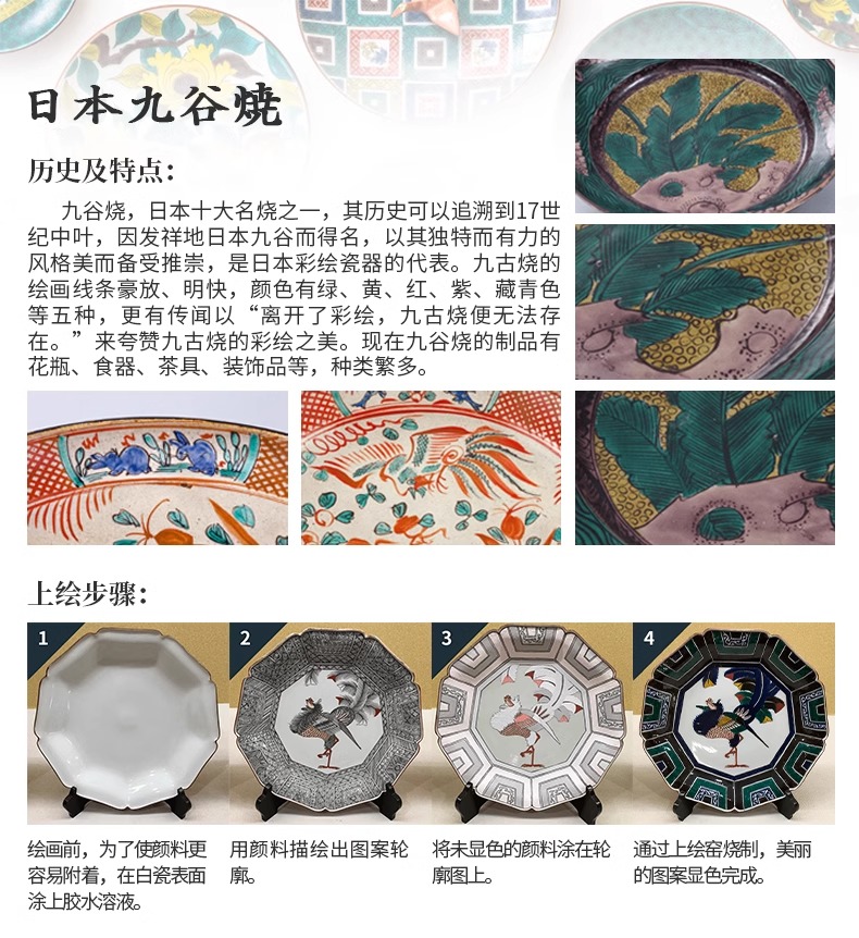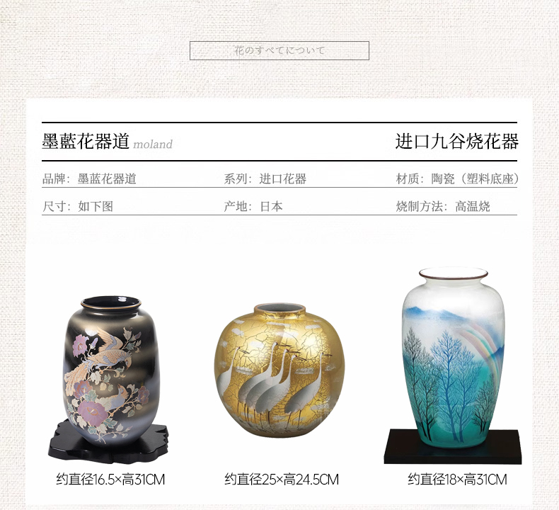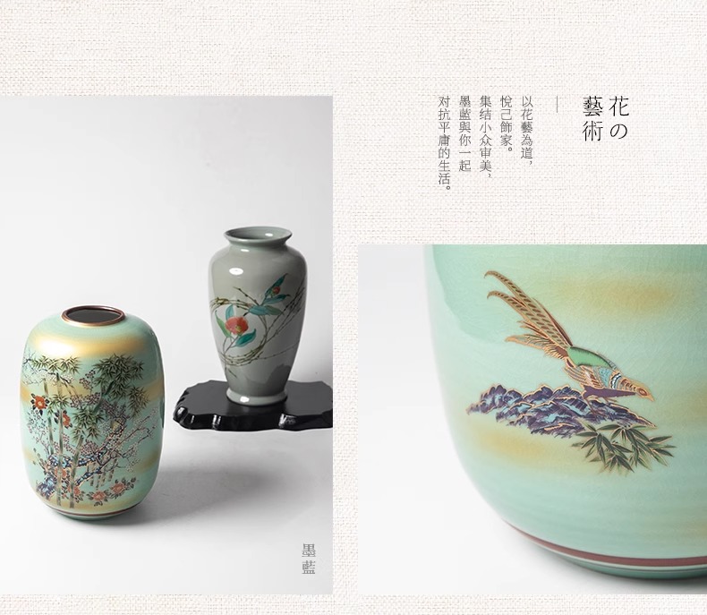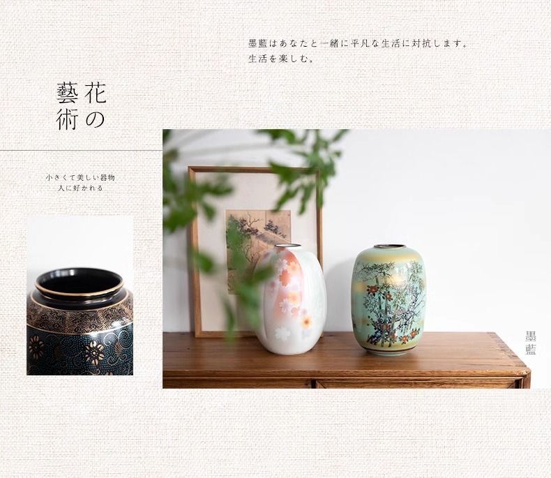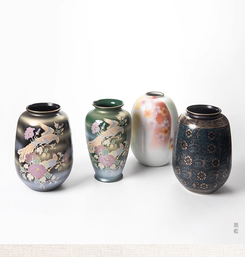 日本进口炫彩九谷烧大号花瓶空间摆件装饰品日式雅致插花投入瓶-YHD