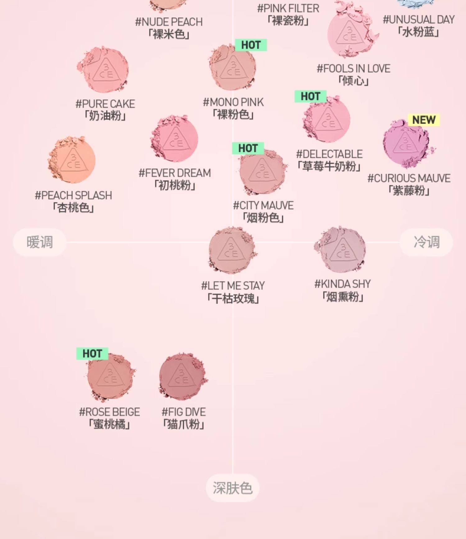 3ce单色腮红rose beige 蜜桃橘 QM
