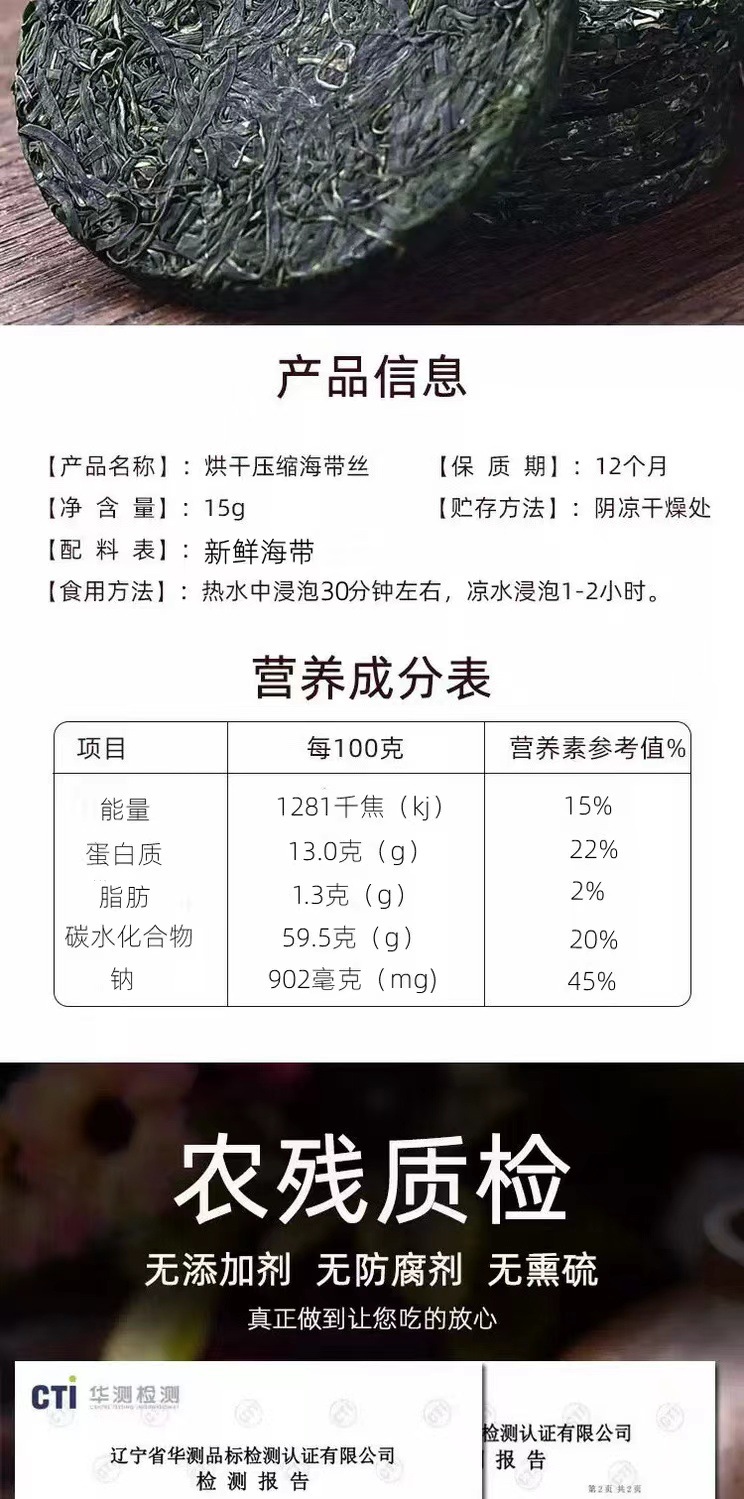 嫩中带脆 爽口解腻 一片就是一盘菜 压缩海带丝圆饼免洗烘干食品级海带丝干货海带丝霞浦干货特产