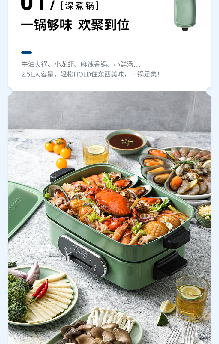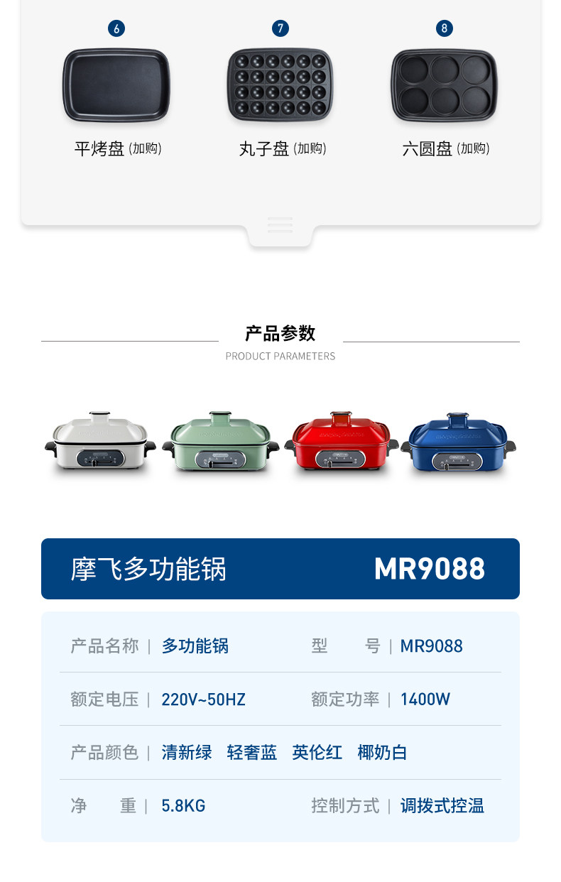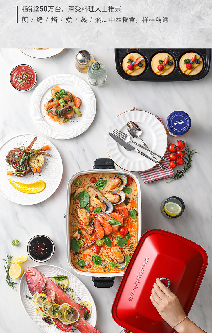 摩飞电器(Morphyrichards)MR9088网红多功能锅多用途料理锅 烧烤 煎锅电火锅