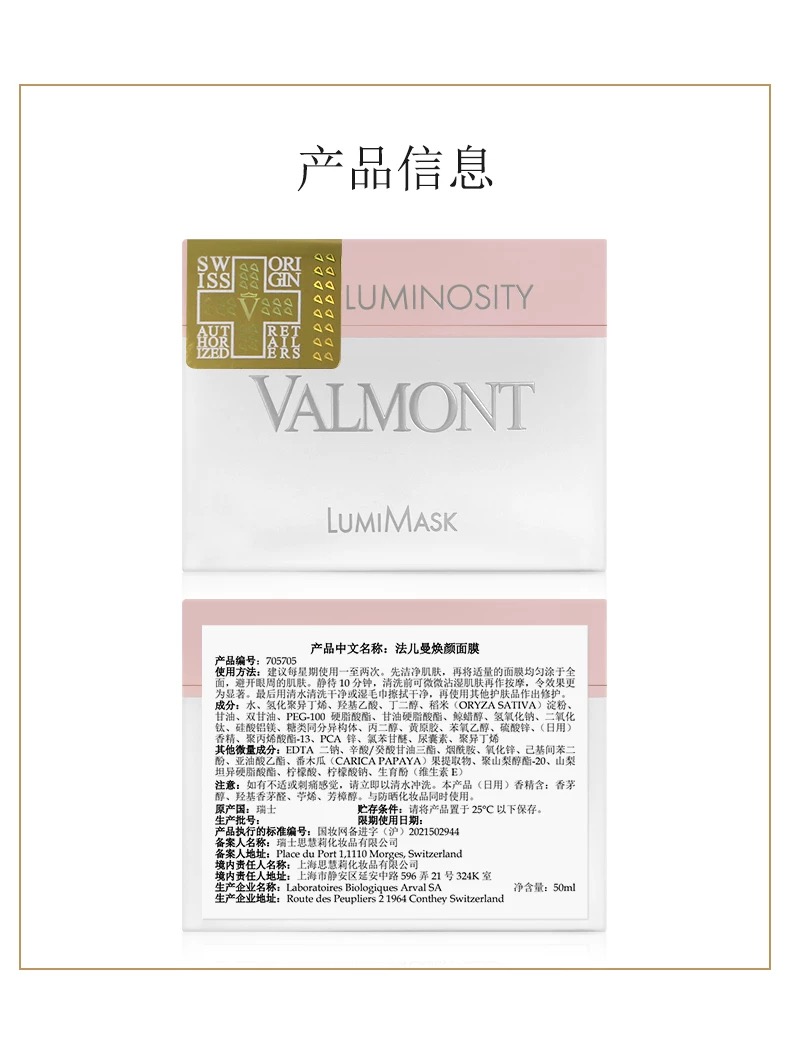 Valmont Lumi焕颜面膜 50ml