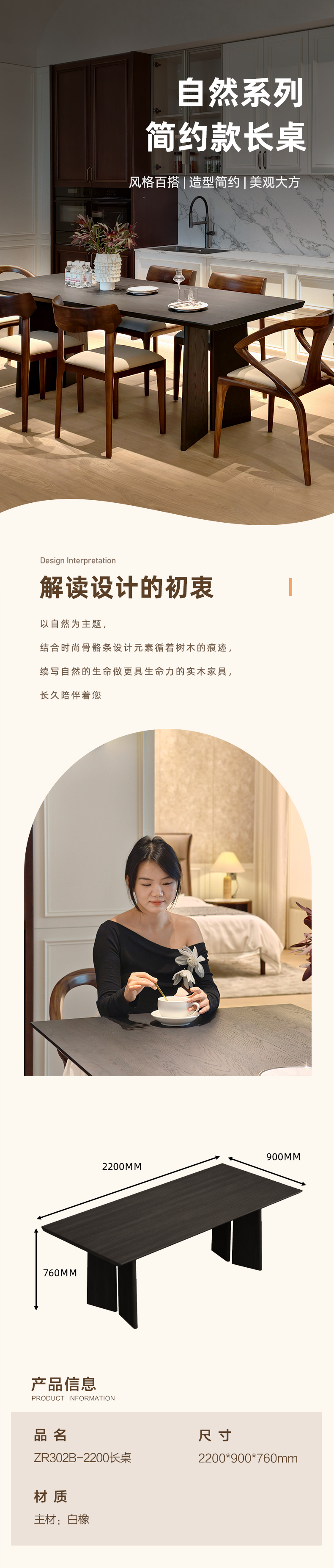 【轻法风-ZR302B-2200餐桌】白橡木/客厅/餐厅/长桌/餐桌/大板桌